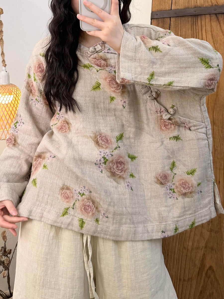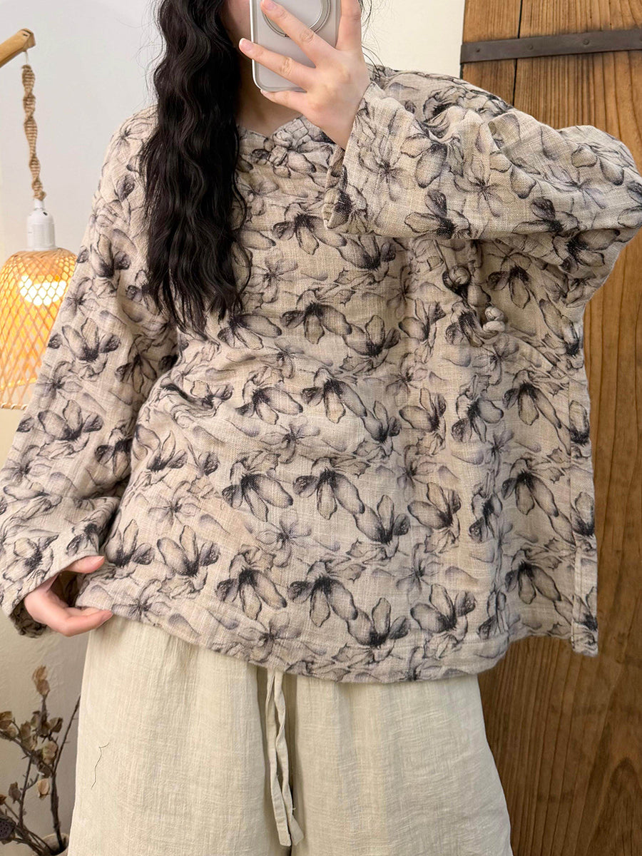Dámská umělecká jarní květinová halenka s výstřihem do O-neck