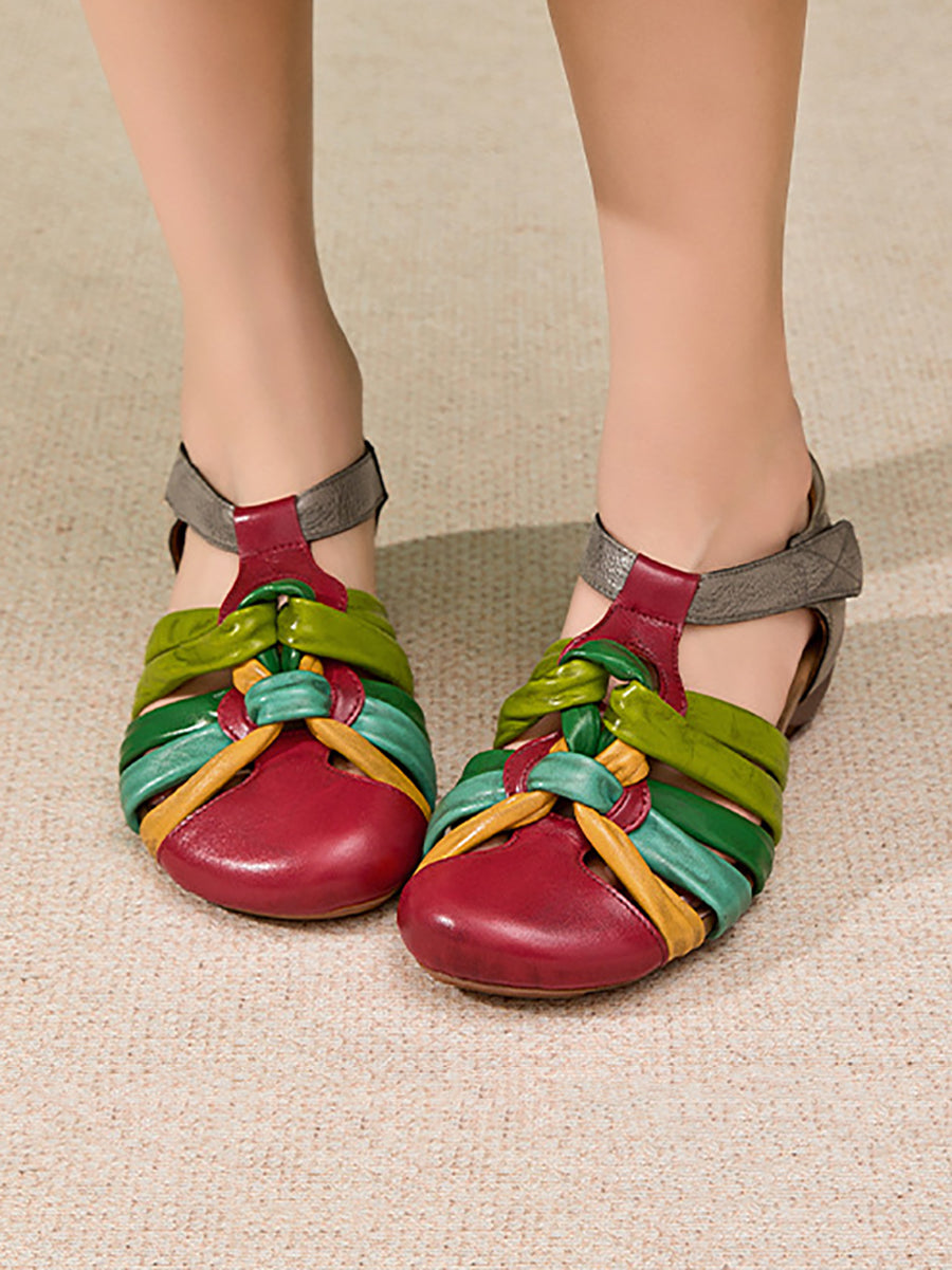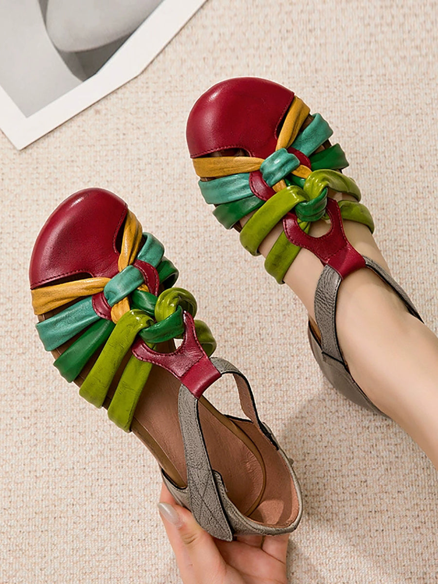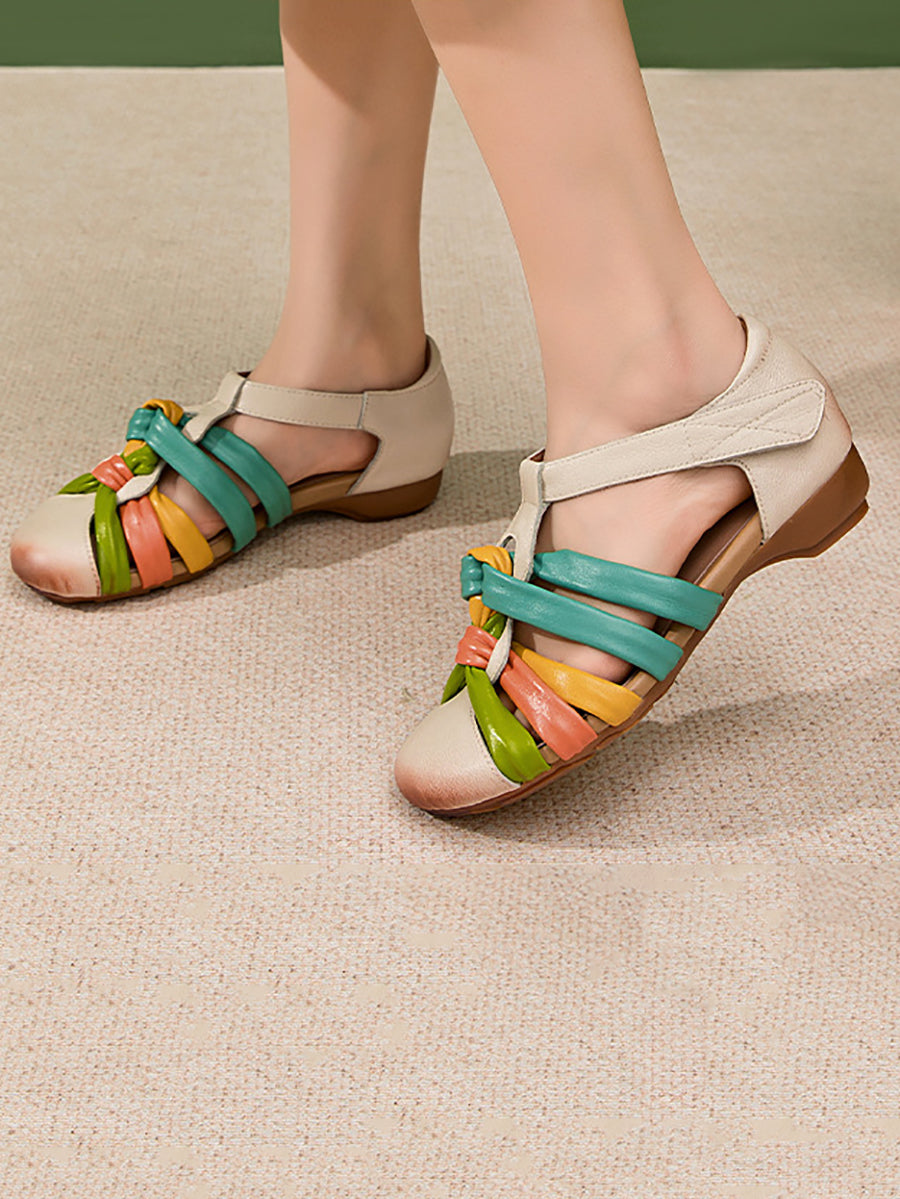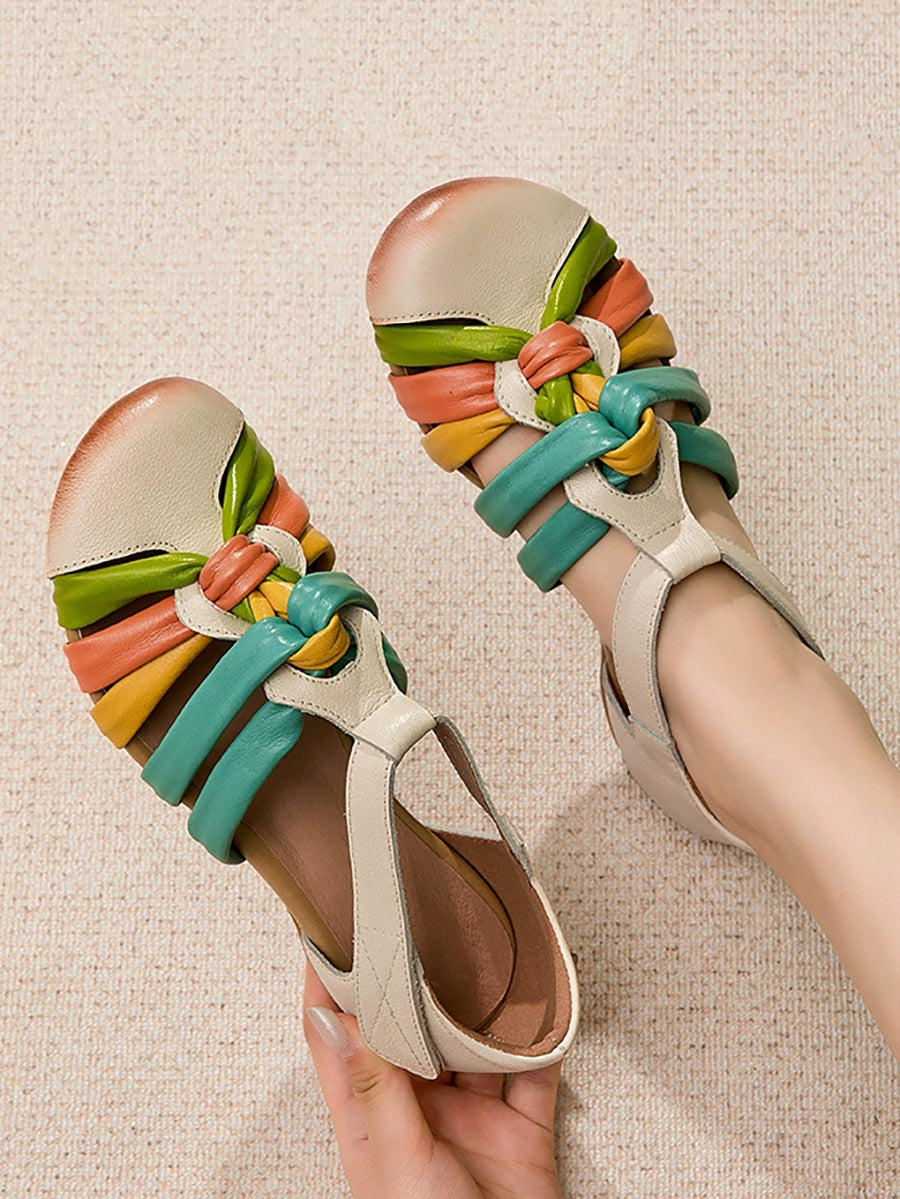Dámské letní barevné bloky z pravé kůže
