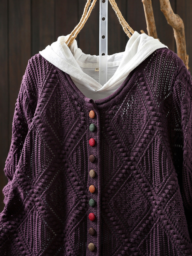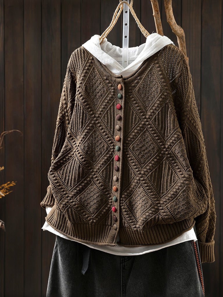 Dámský podzimní vintage kosočtvercový pletený svetr s výstřihem do O-neck