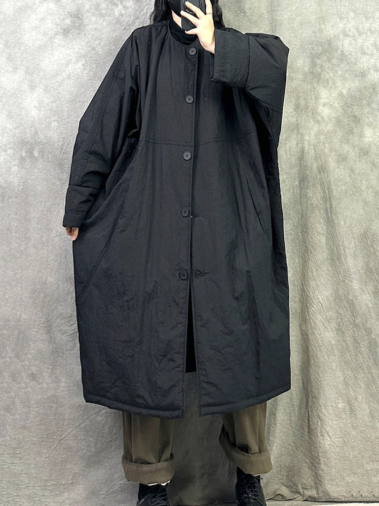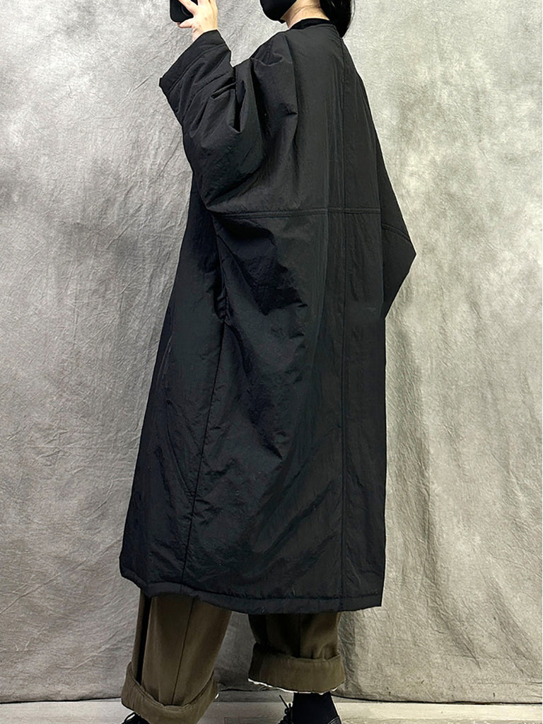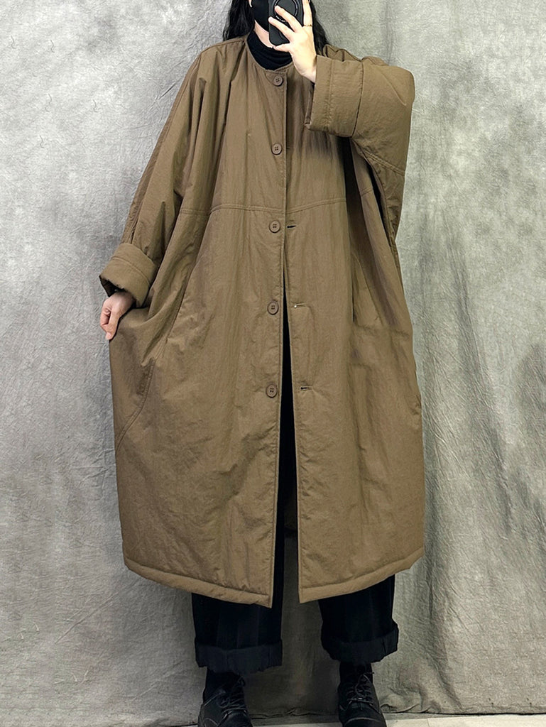 Dámský zimní ležérní čistě barevný dlouhý prošívaný kabát s výstřihem do O-neck