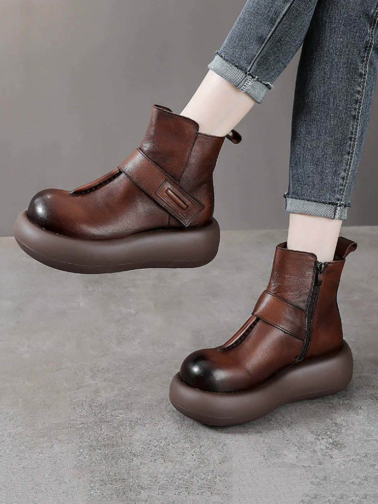 Dámské zimní kožené kotníkové boty na platformě v čisté barvě