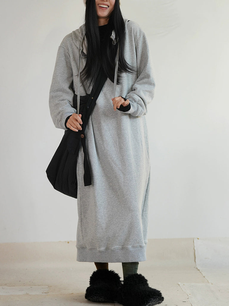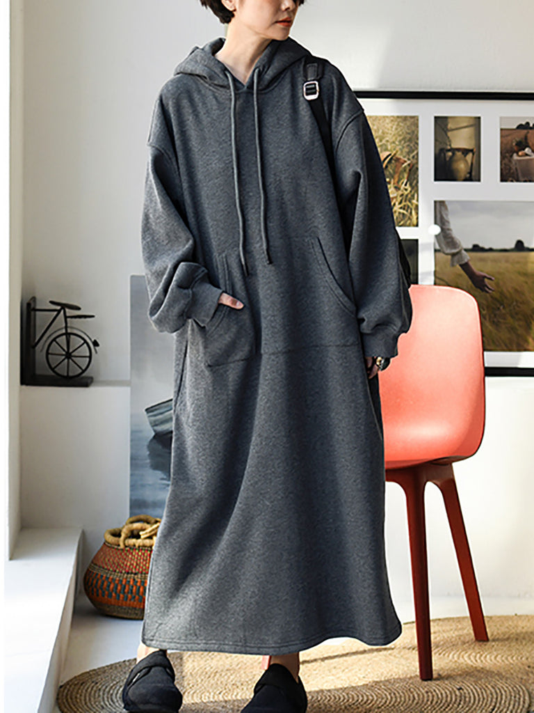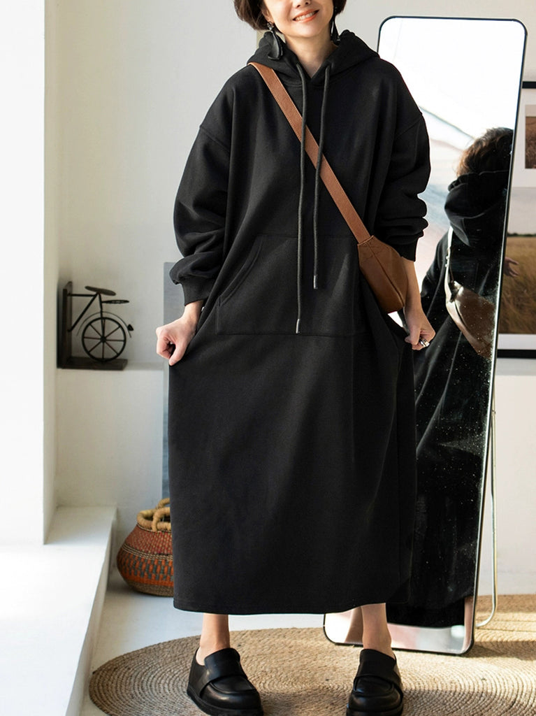 Dámské podzimní ležérní bavlněné šaty s kapucí v čisté barvě