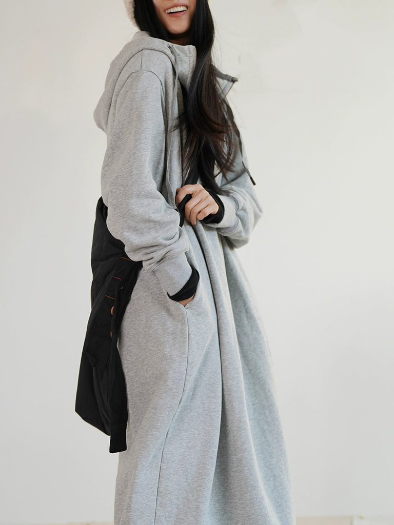 Dámské podzimní ležérní čisté barvy s kapucí, 100% bavlna