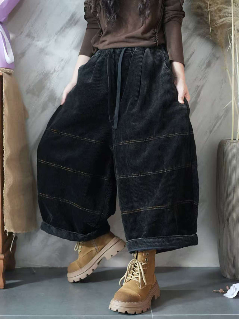 Dámské podzimní retro čisté barvy manšestrové splývavé harémové kalhoty
