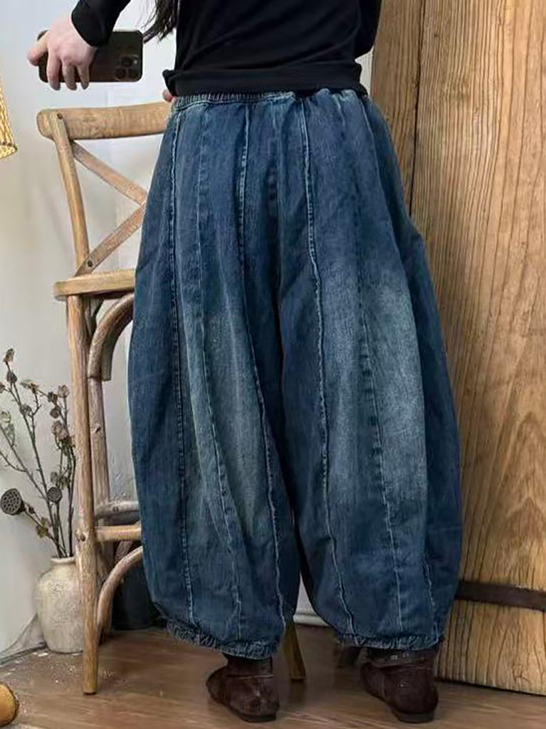 Dámské podzimní retro čisté barvy džínové sešité harémové kalhoty