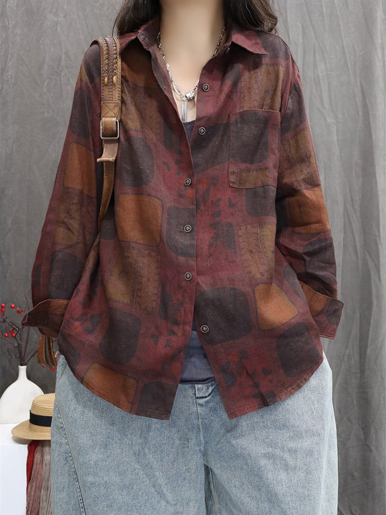 Dámská košile s odkládacím límcem a podzimním květinovým vzorem, 100% lněná