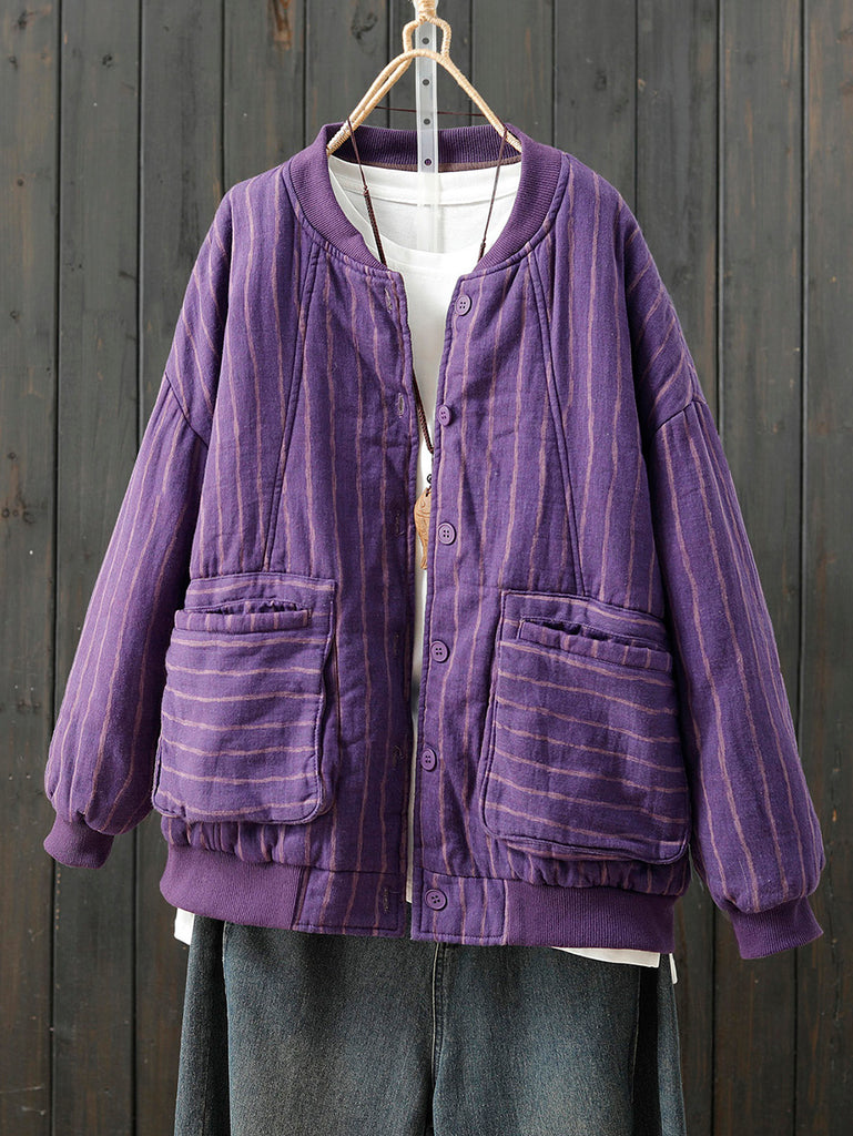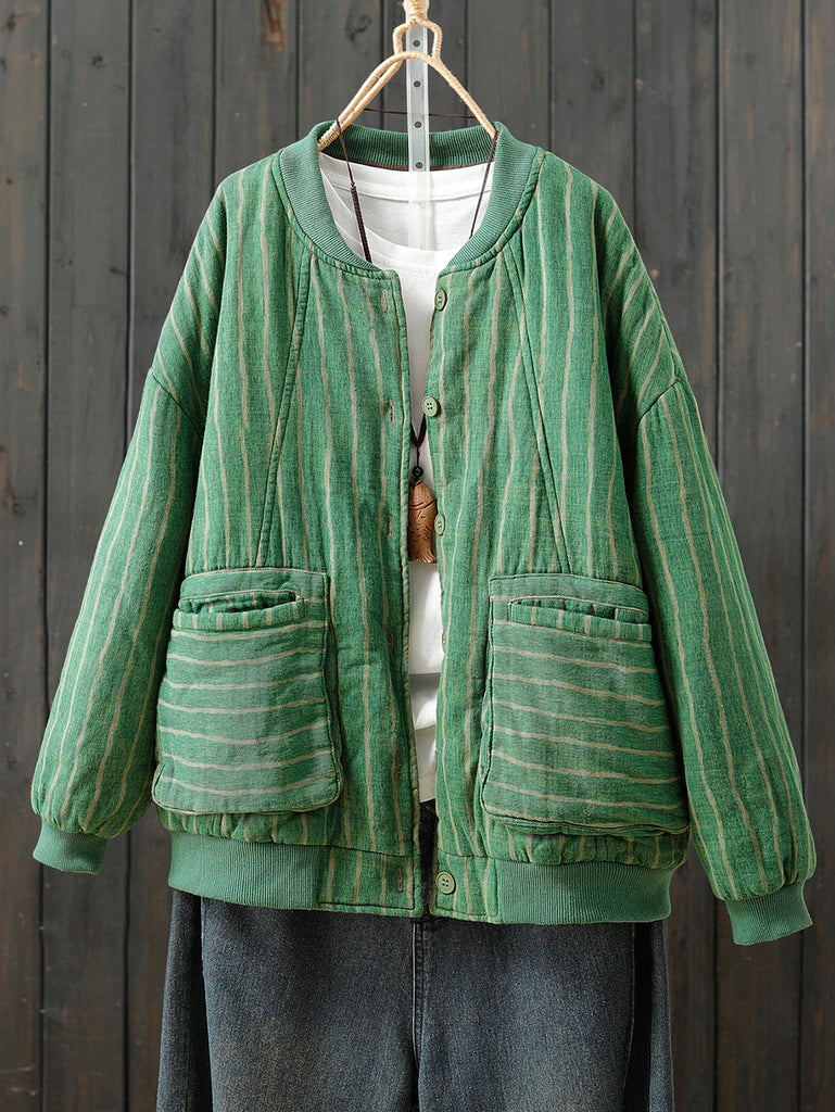 Dámský retro podzimní pruhovaný stojáček s bavlněným prošívaným kabátem