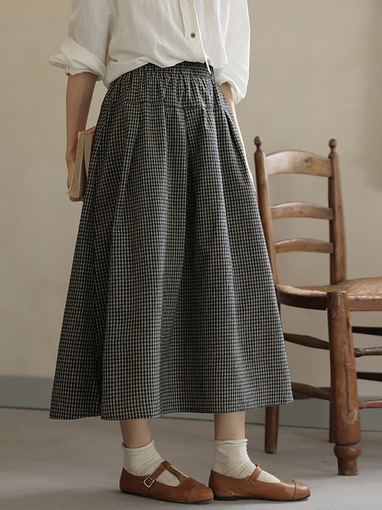 Dámská podzimní vintage mřížkovaná sukně ve tvaru A, 100% bavlna