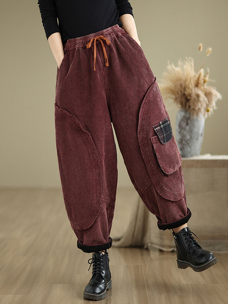 Dámské podzimní retro čisté barevné manšestrové harémové kalhoty