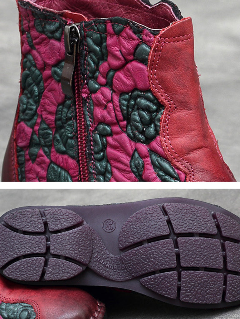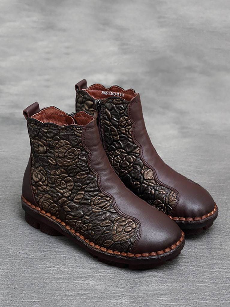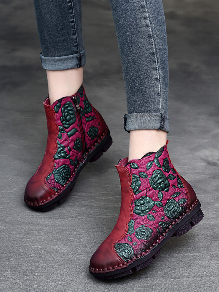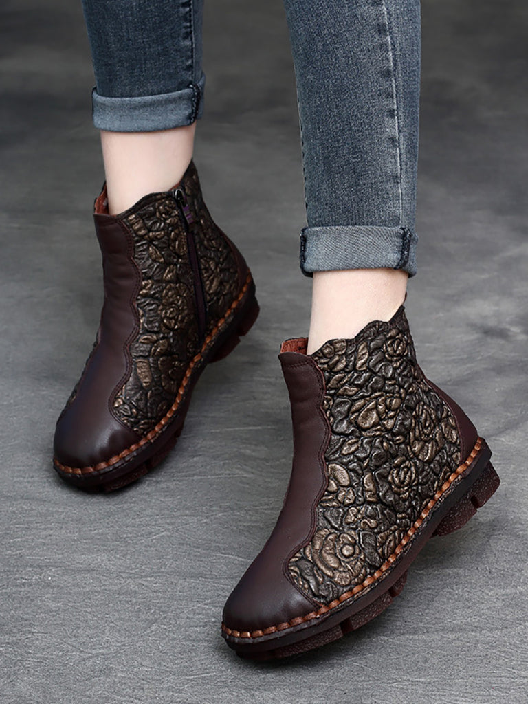 Dámské kozačky na nízkém podpatku se zapínáním na zip z retro květinové kůže