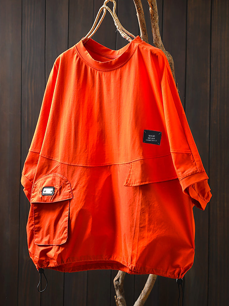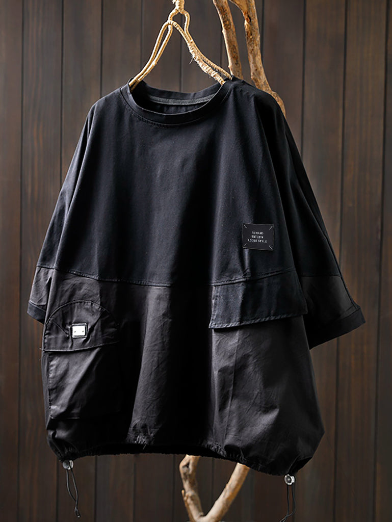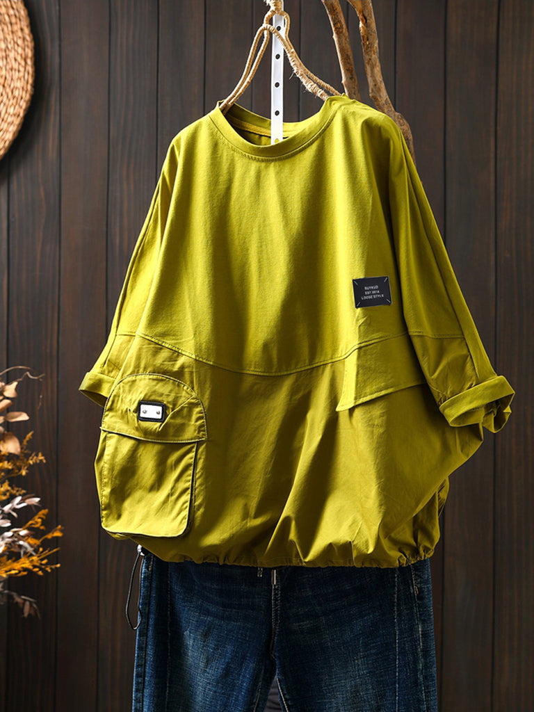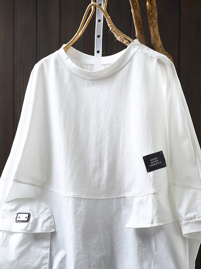 Dámská letní košile s kapsou a výstřihem do O-neck v plus velikostech