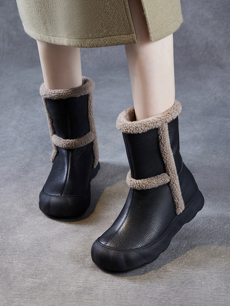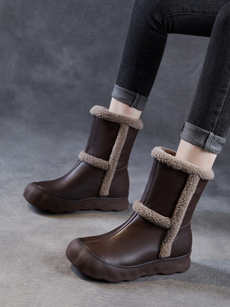 Dámské vintage boty z pravé kůže s flísovou podšívkou