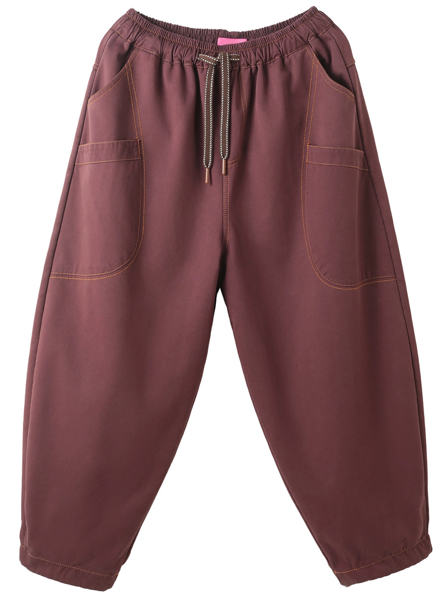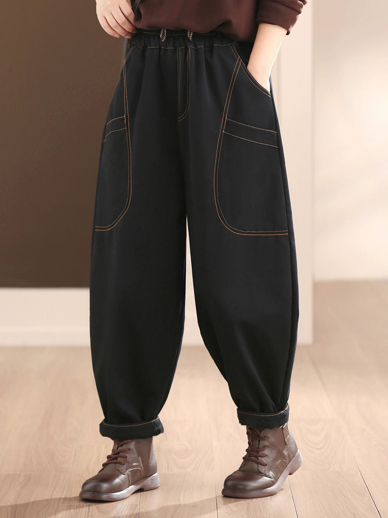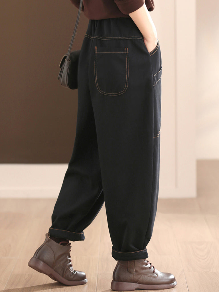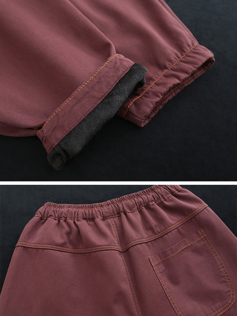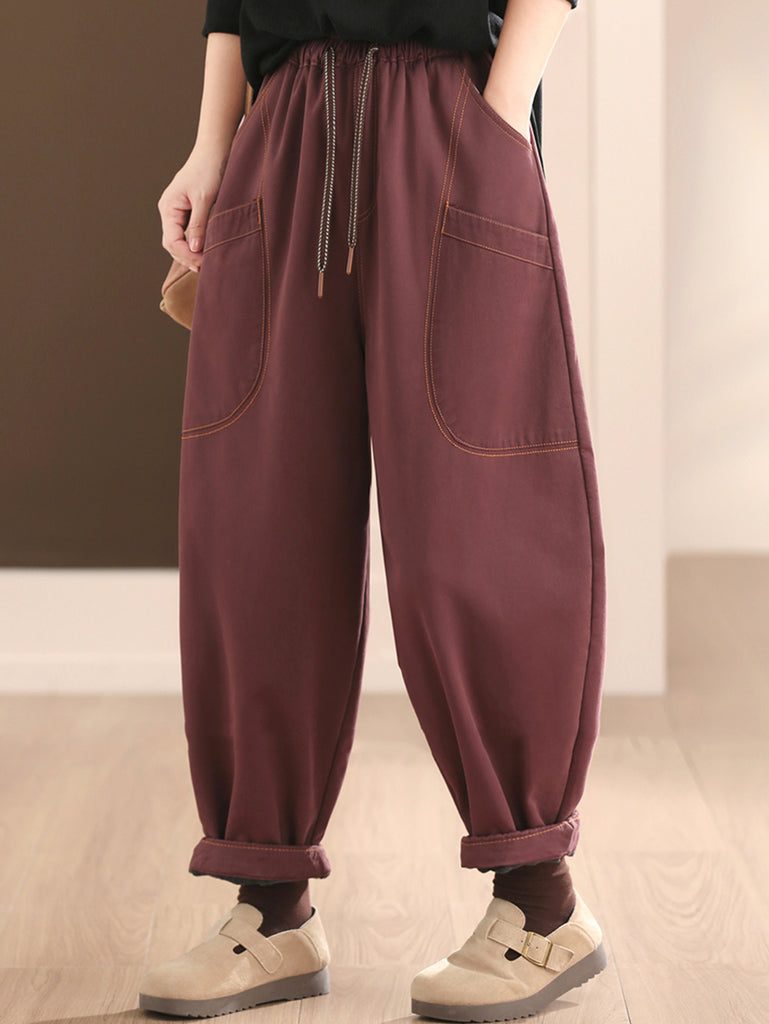 Dámské zimní ležérní čisté barvy bavlněné fleecové harémové kalhoty