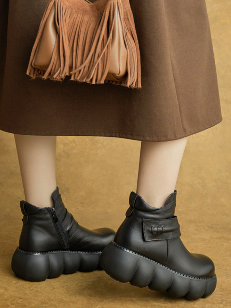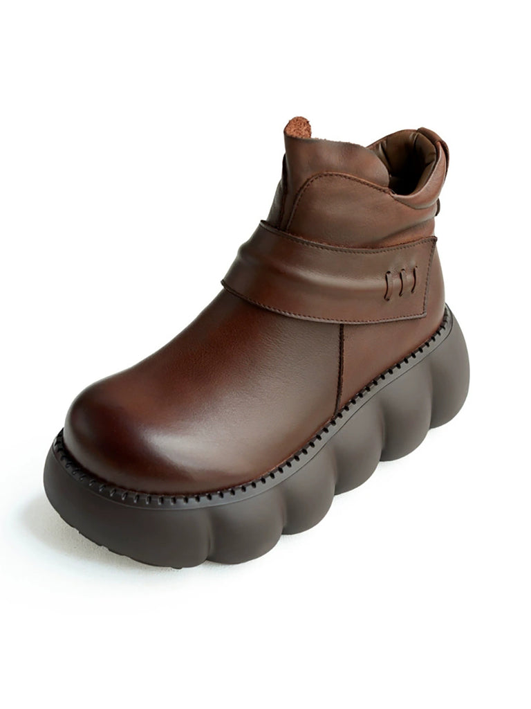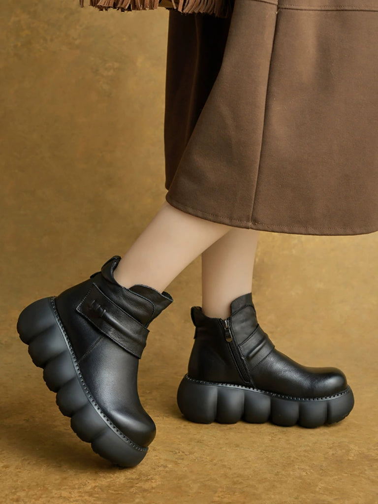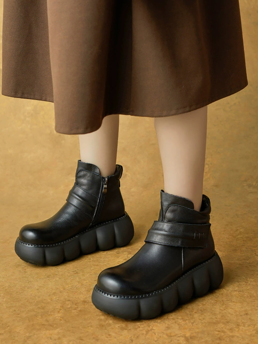 Dámské zimní boty na platformě z pravé kůže s fleecovou podšívkou