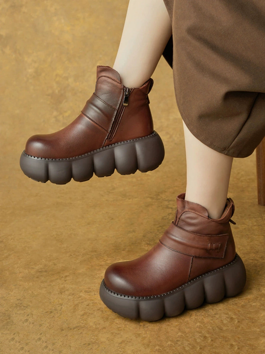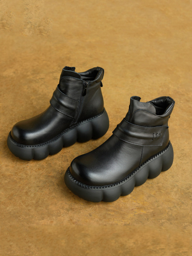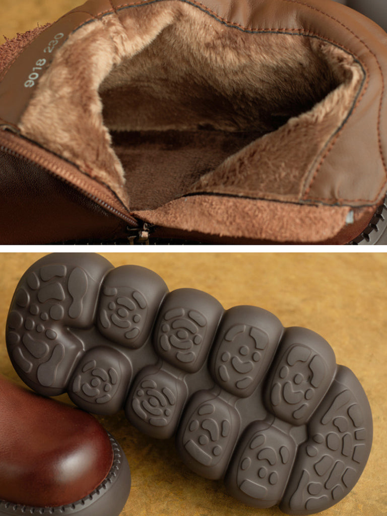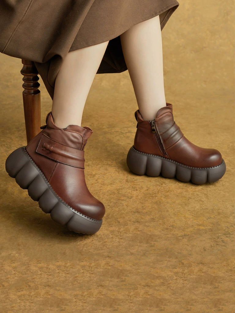 Dámské zimní boty na platformě z pravé kůže s fleecovou podšívkou