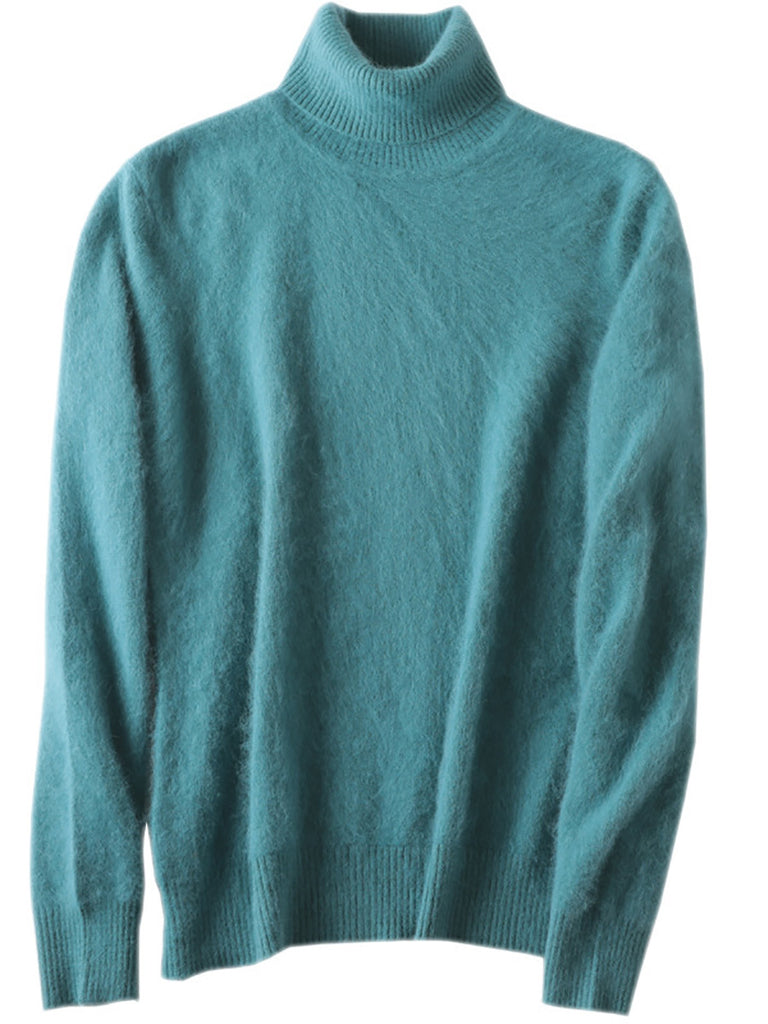 Dámský podzimní ležérní svetr s vlněným úpletem do O s výstřihem