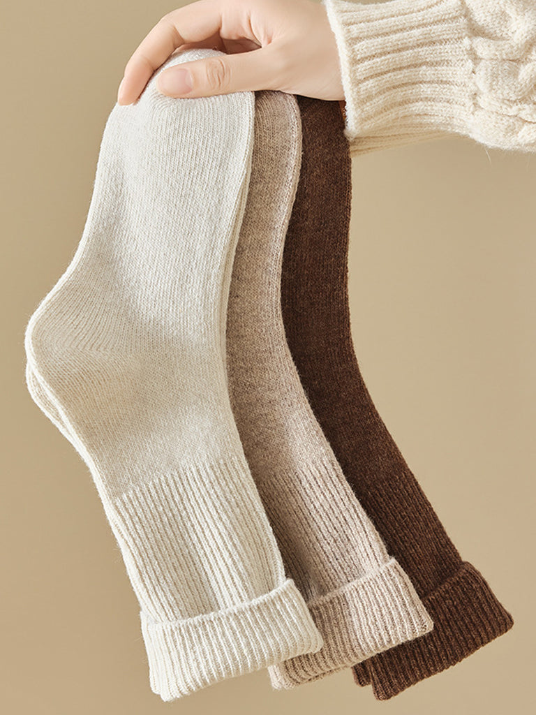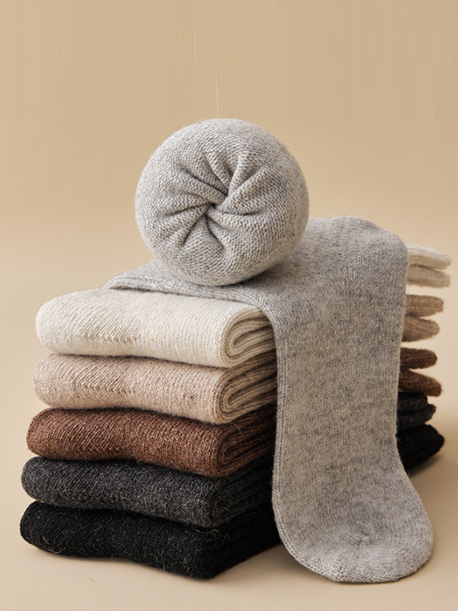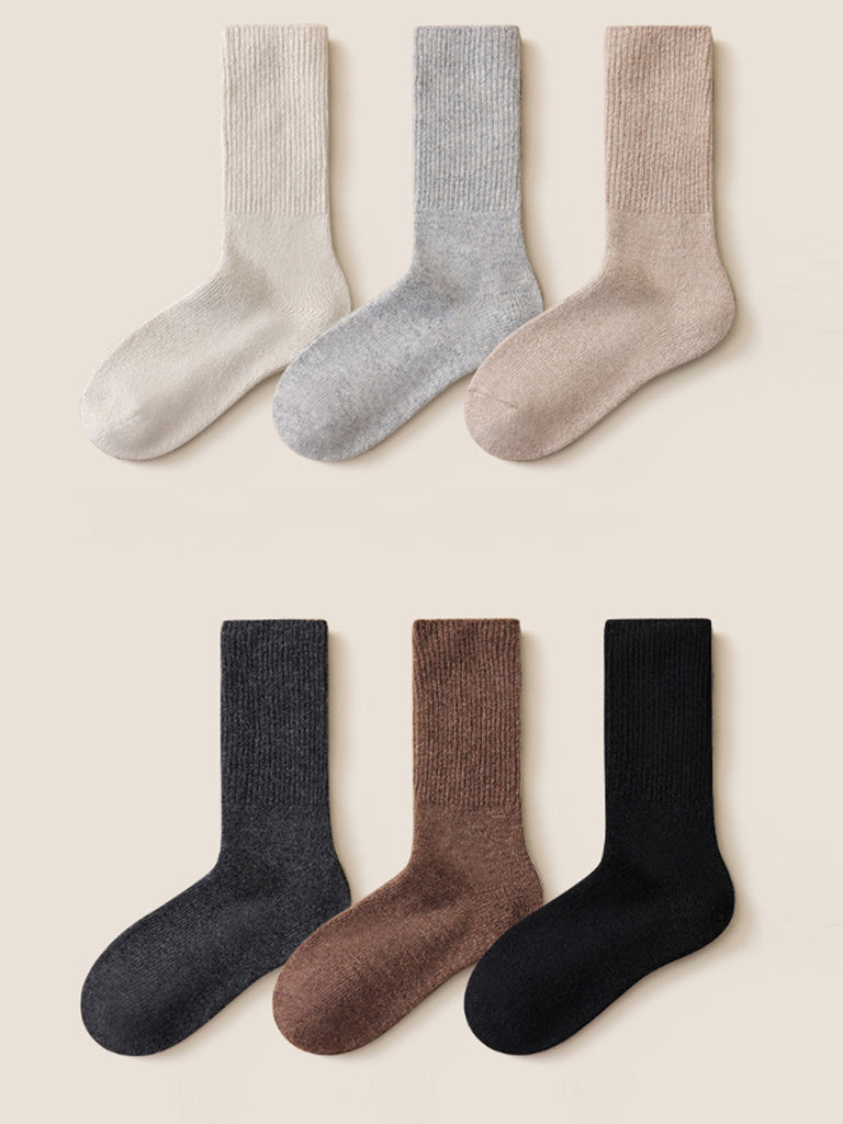 6 párů dámských zimních teplých ponožek v čistě barevných barvách