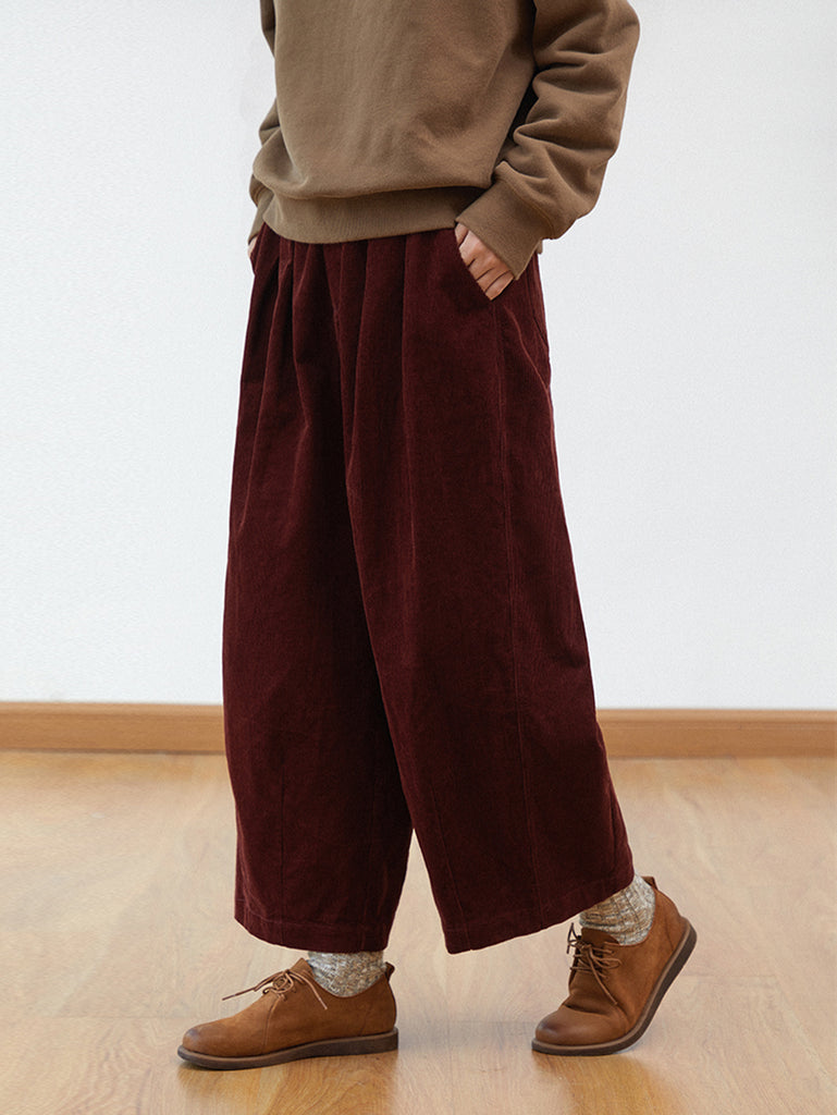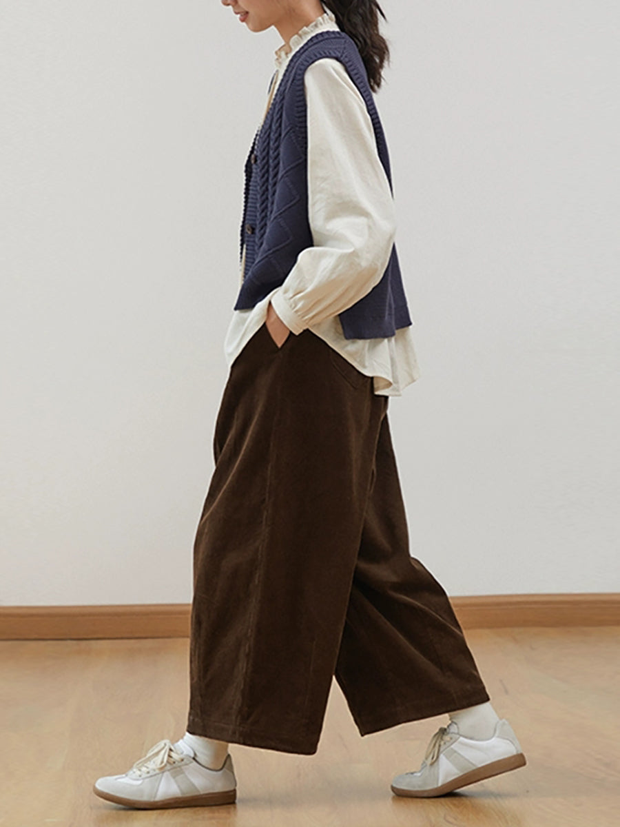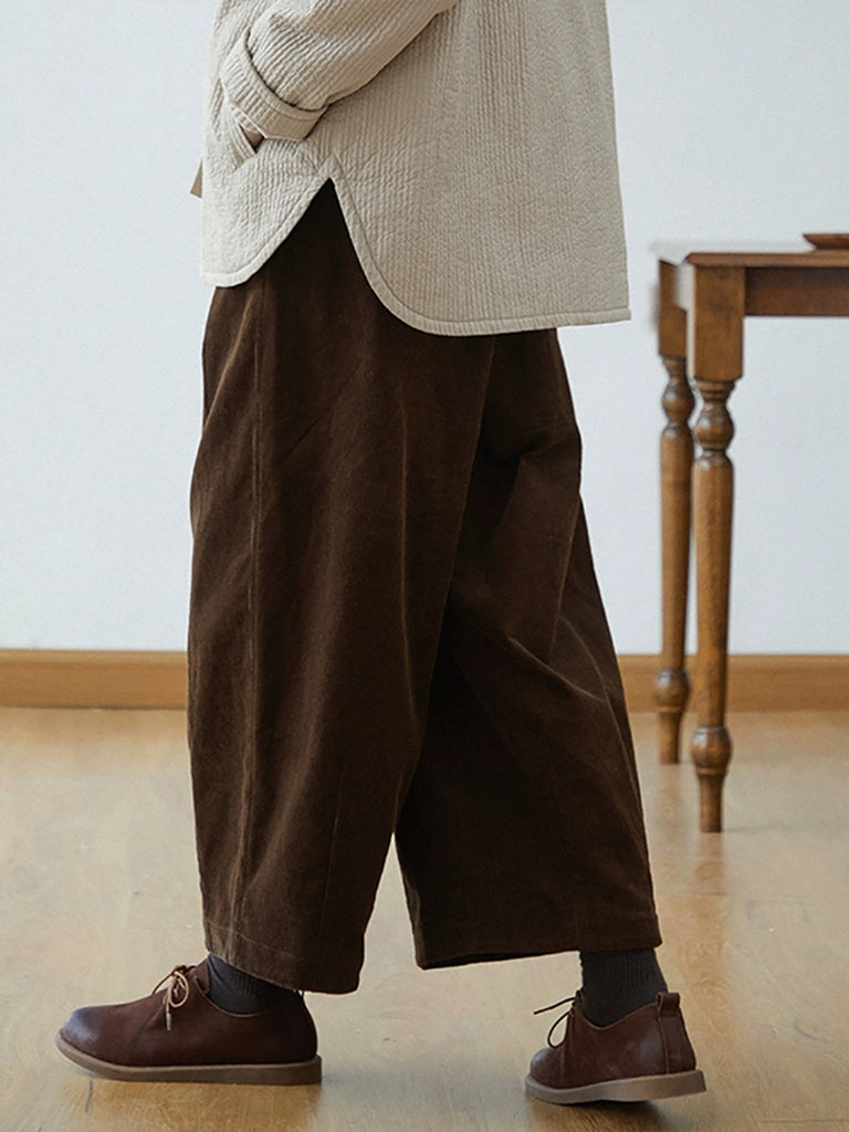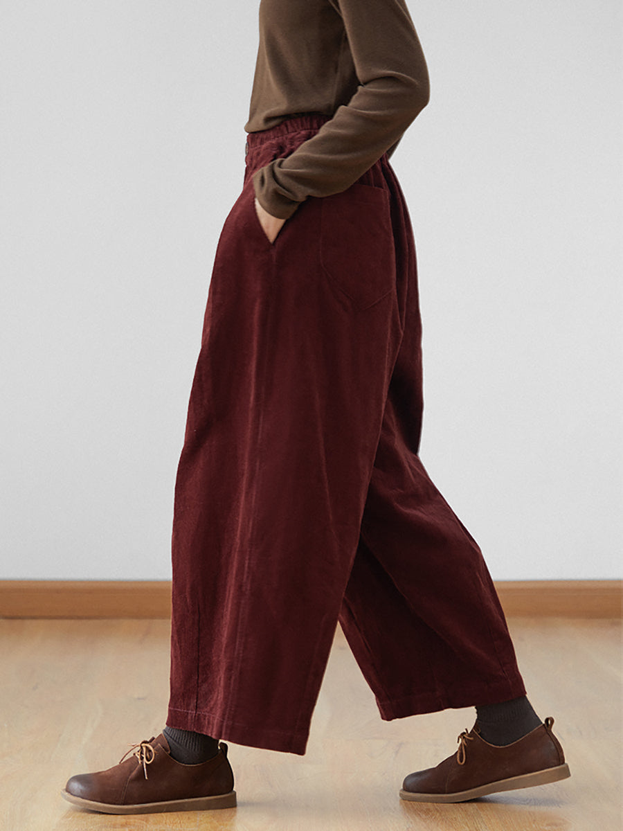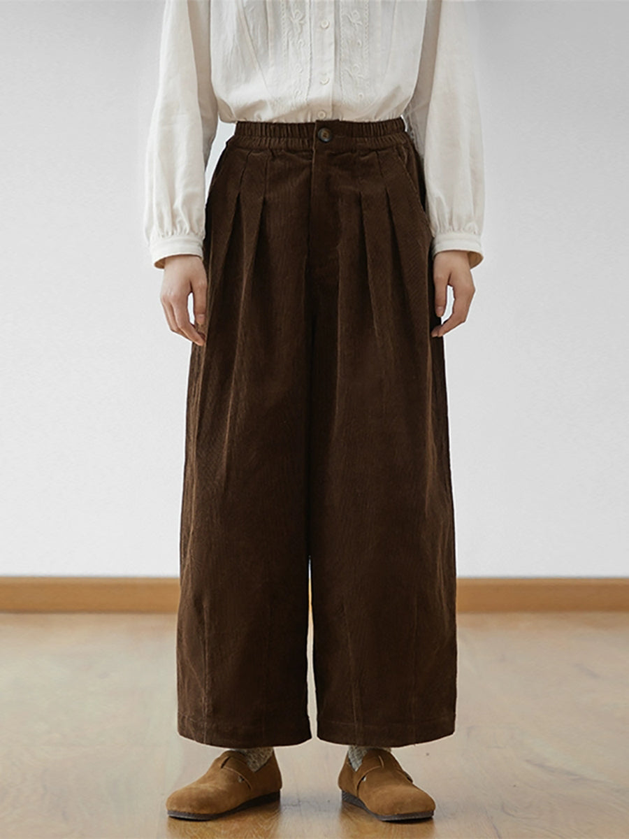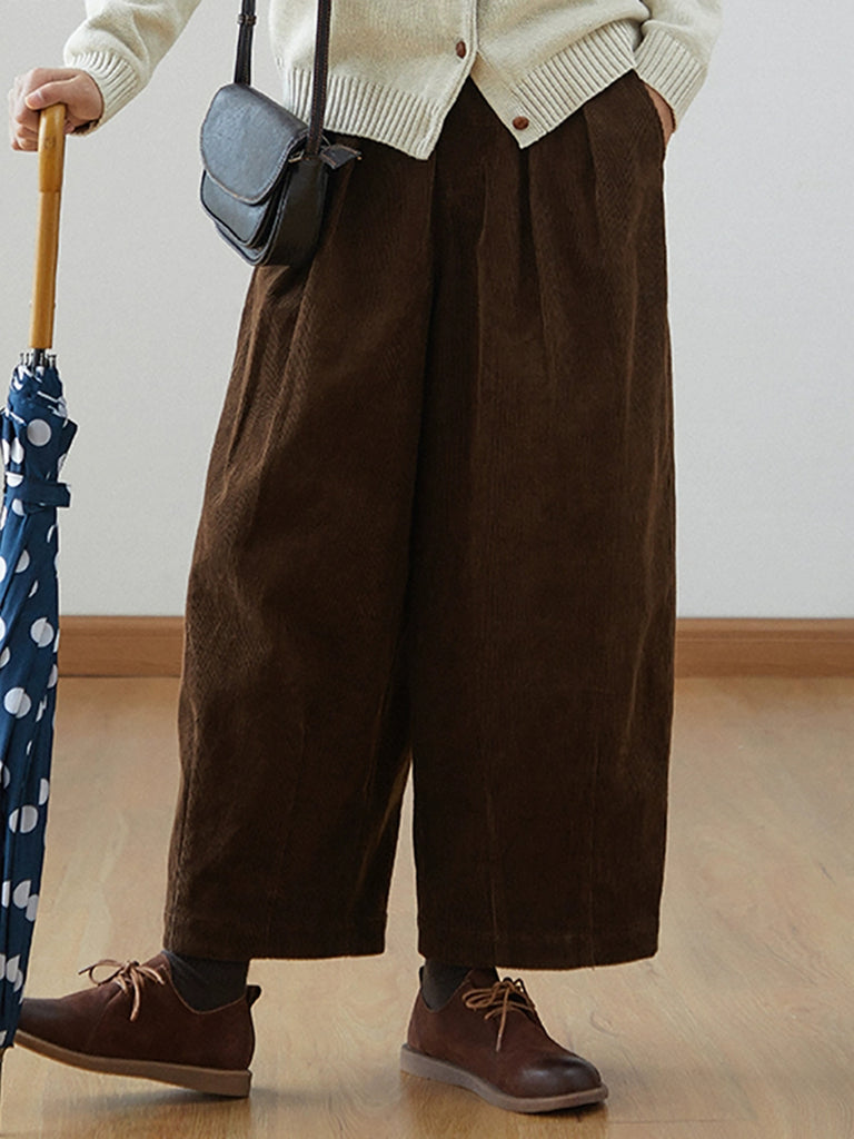 Dámské podzimní retro manšestrové kalhoty s širokými nohavicemi