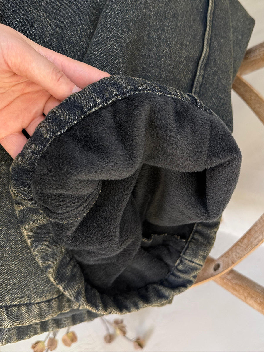 Dámské podzimní retro džínové kalhoty s flísovou podšívkou a širokými nohavicemi