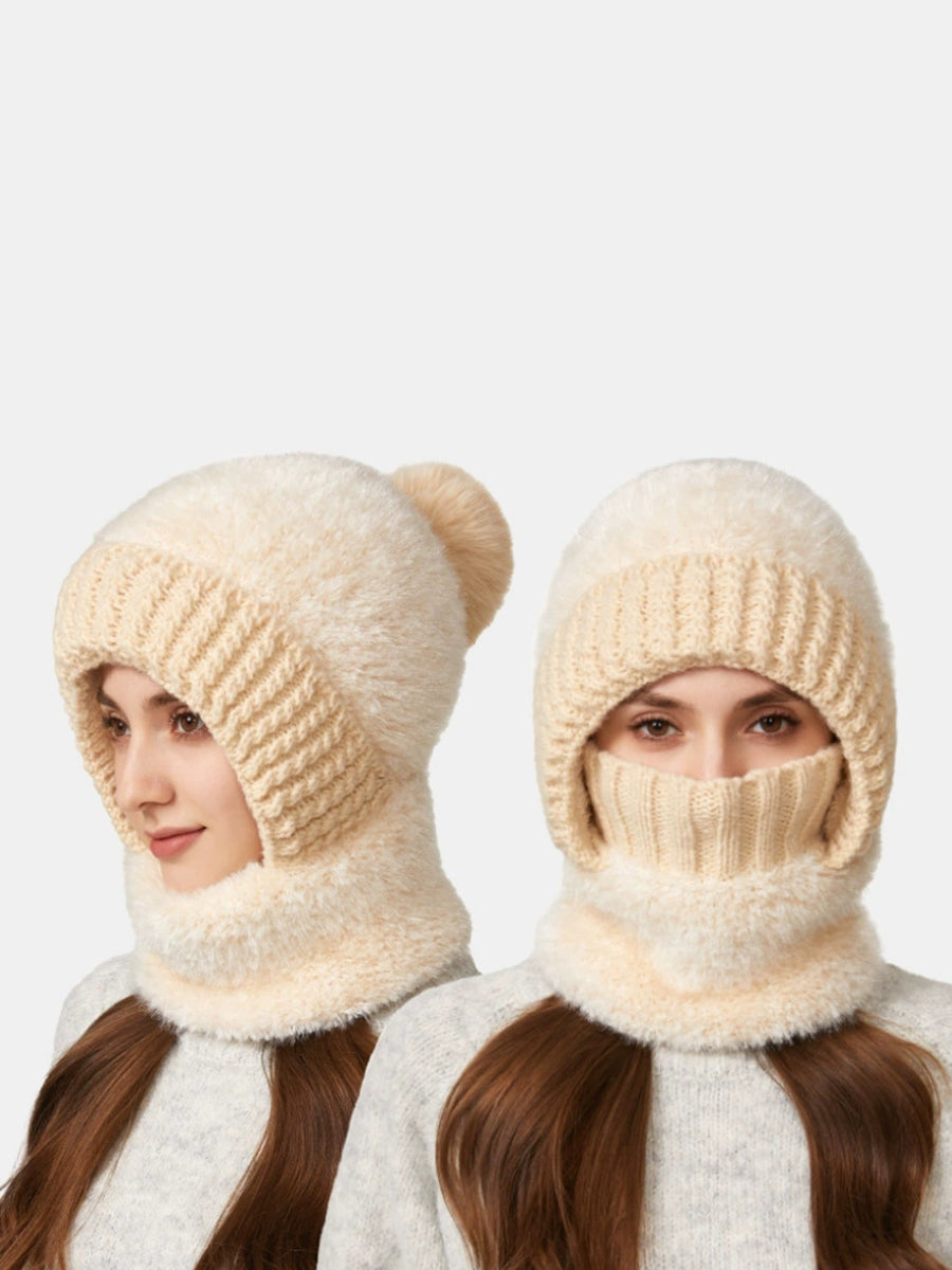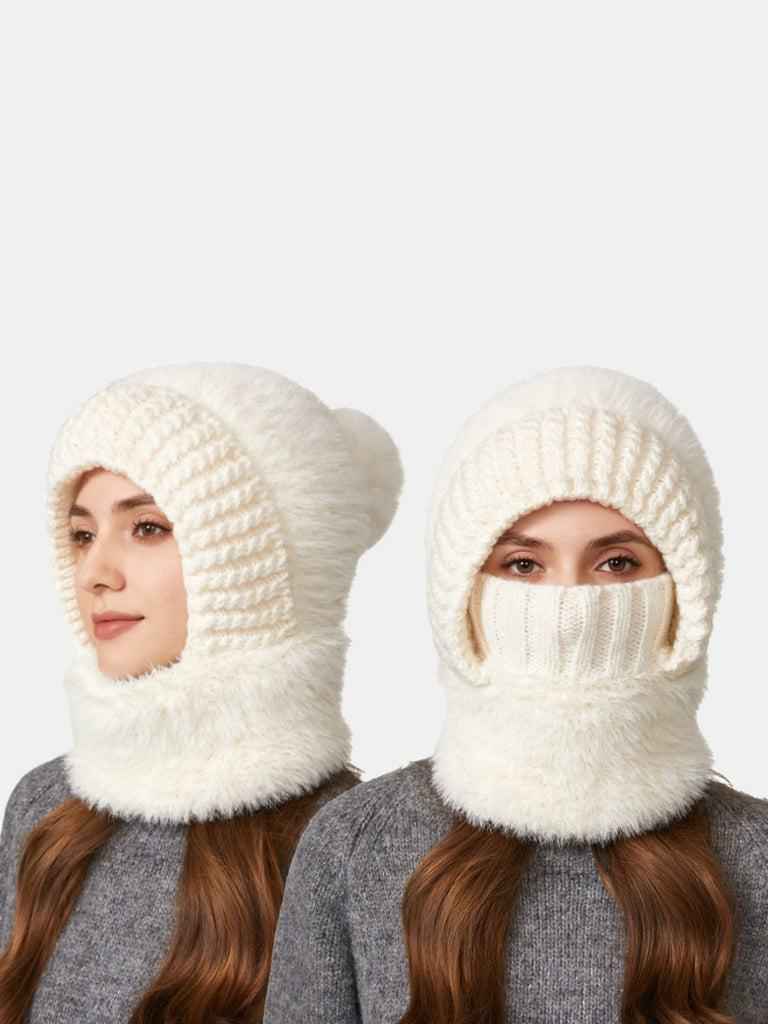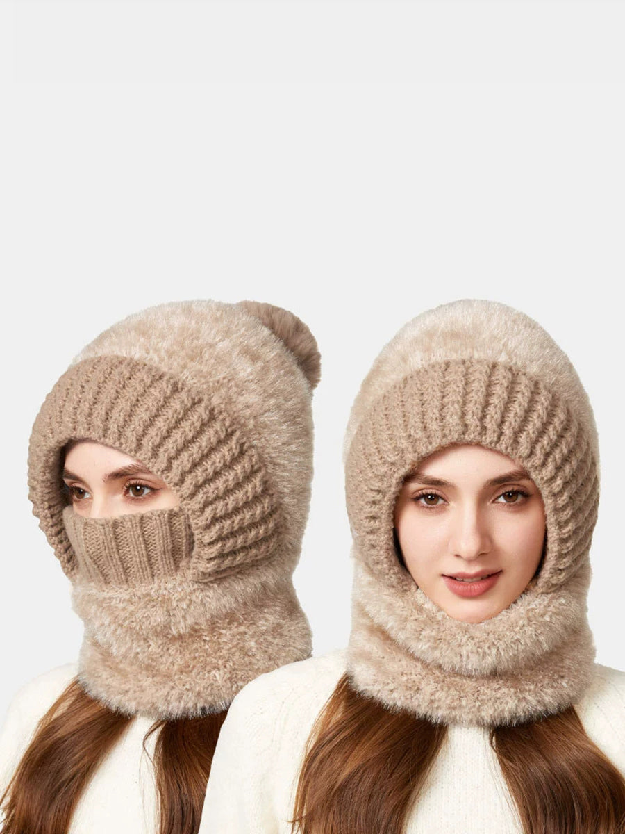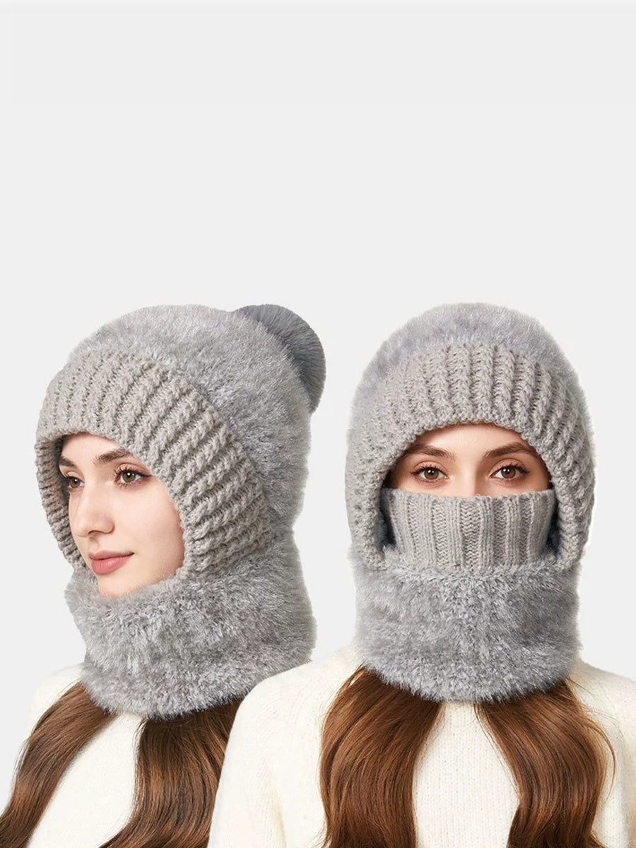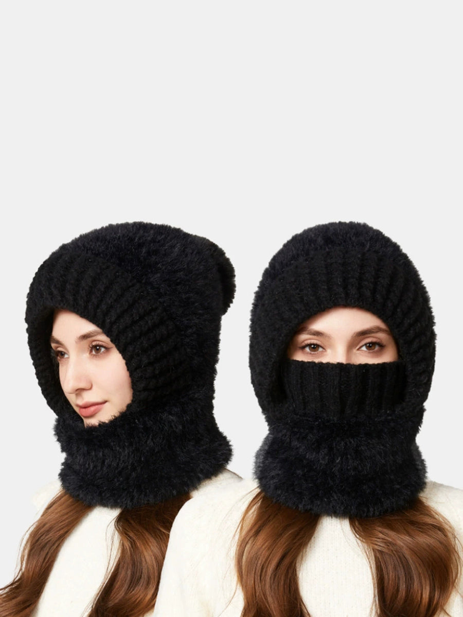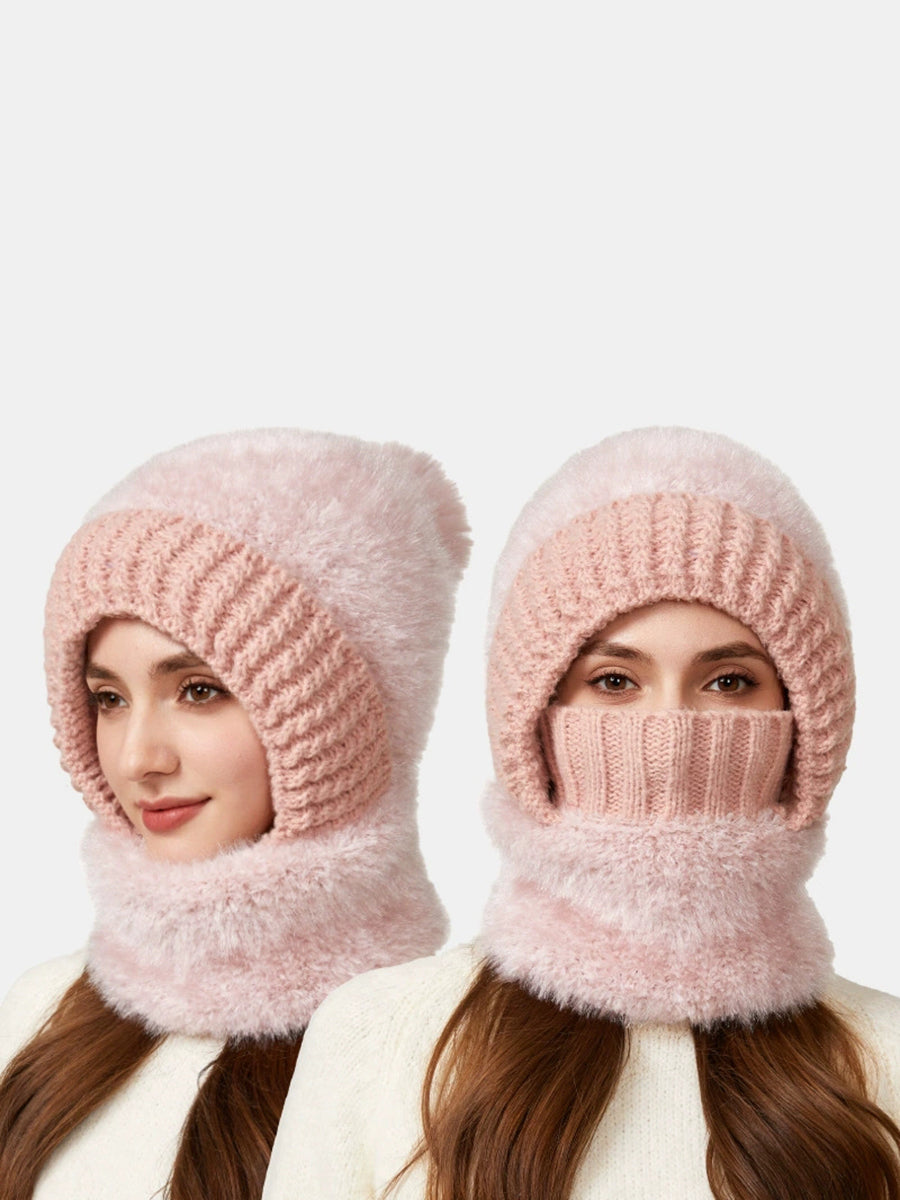 Dámská ležérní pletená šála s čepicí v čistých barvách