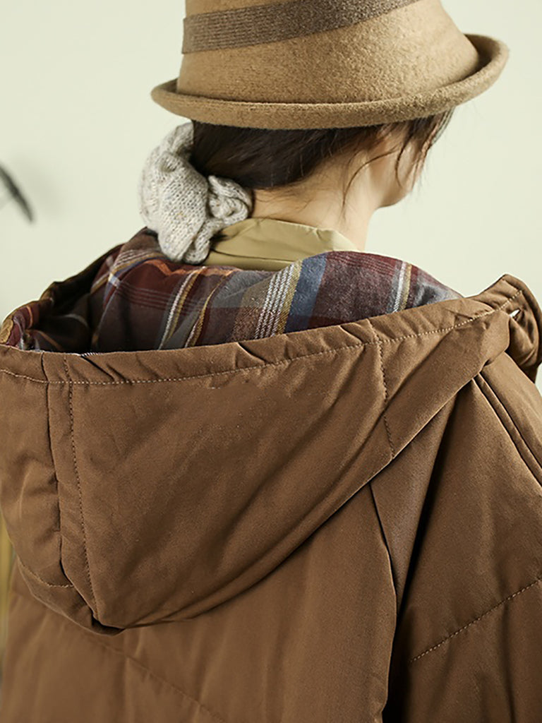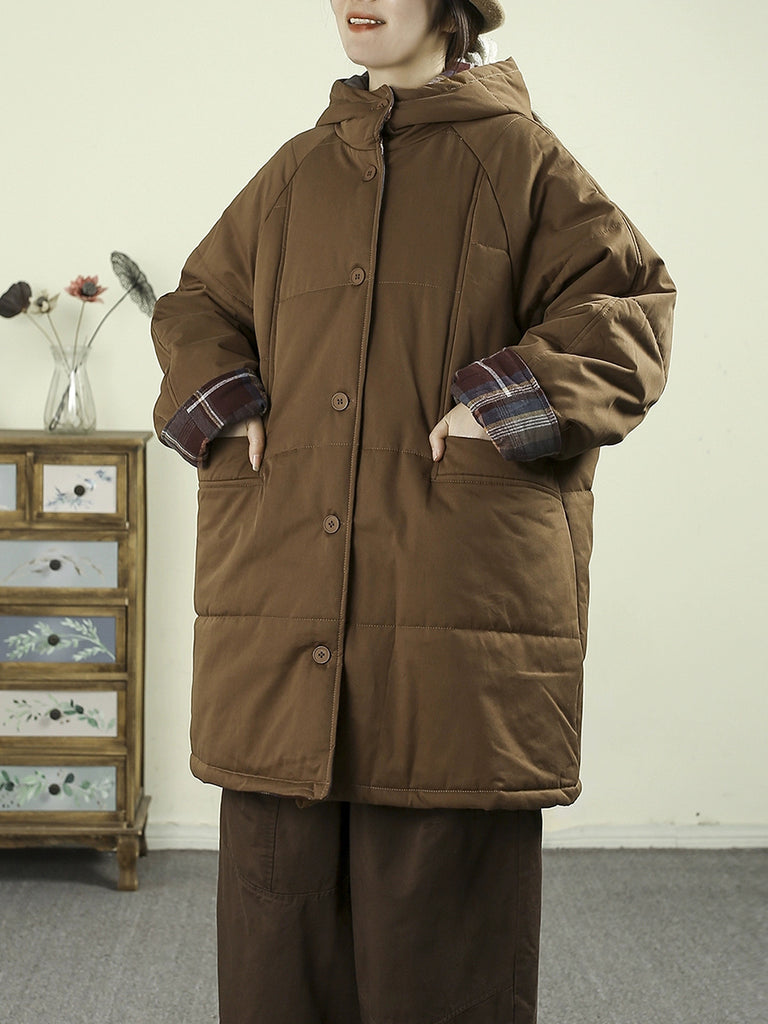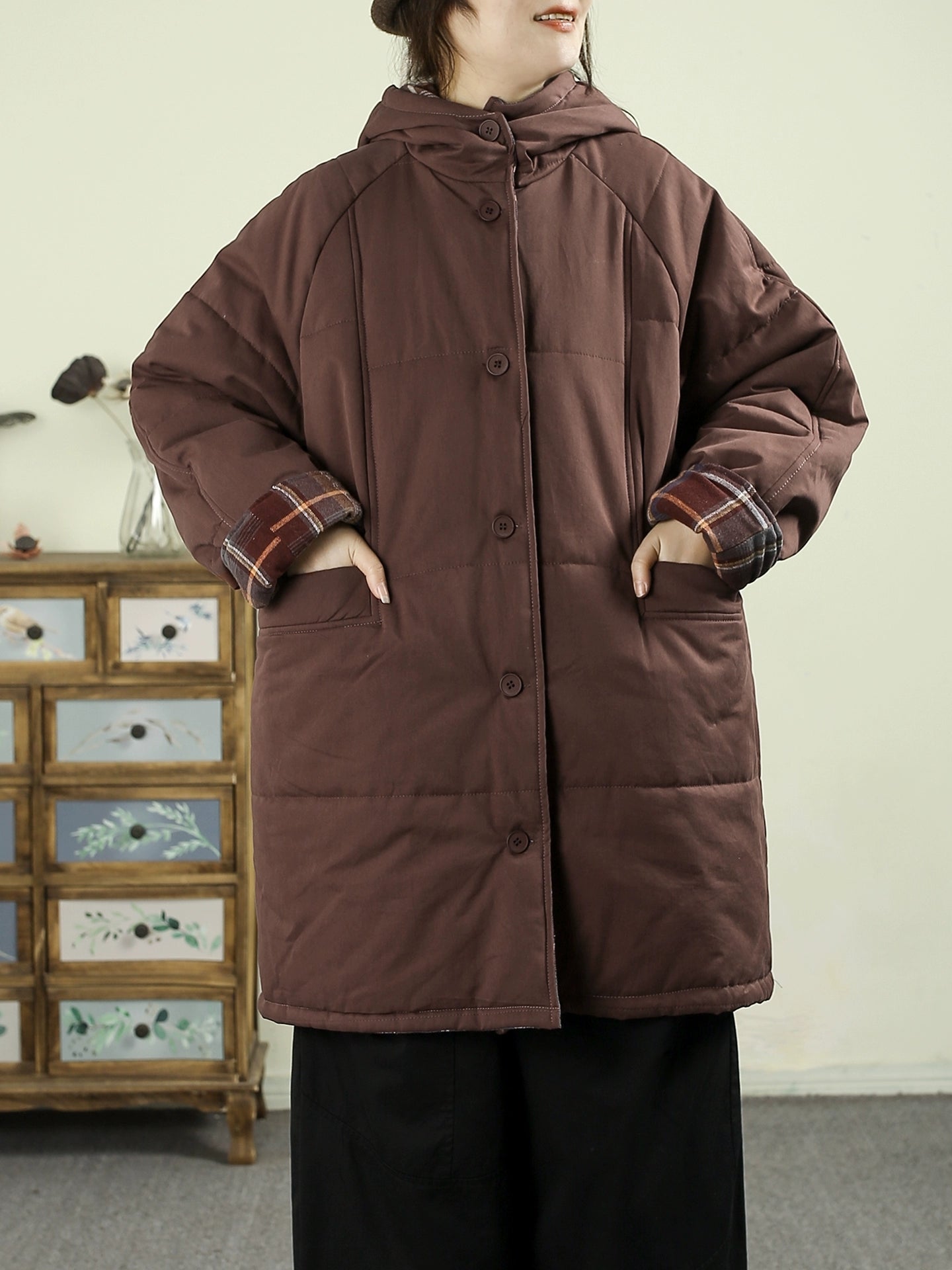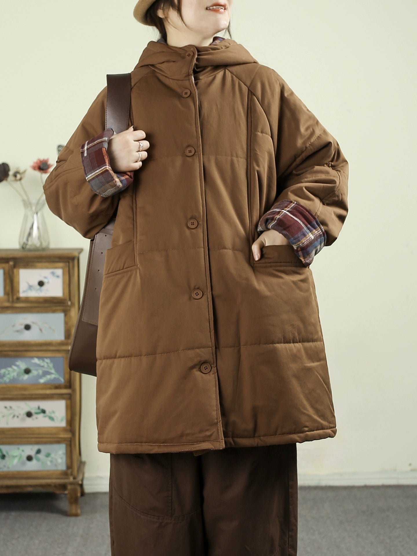 Dámský zimní kabát s kapucí, prošívaný, 100% bavlna, čisté barvy
