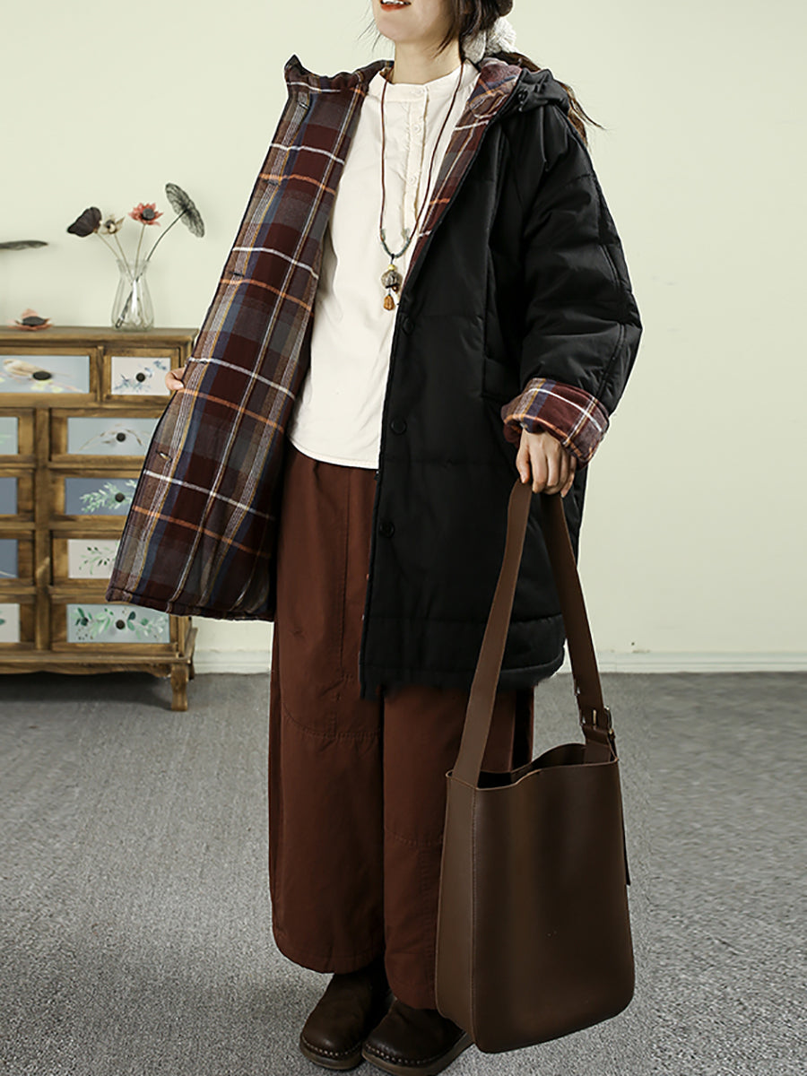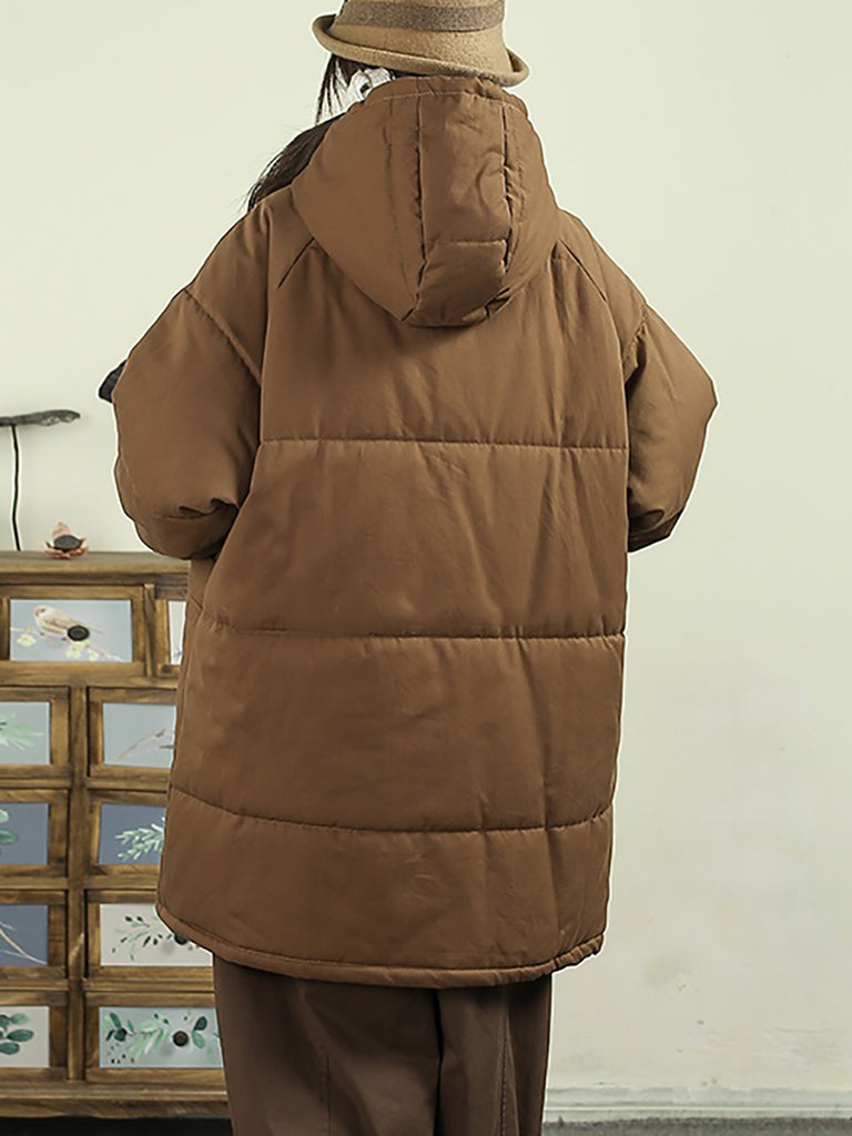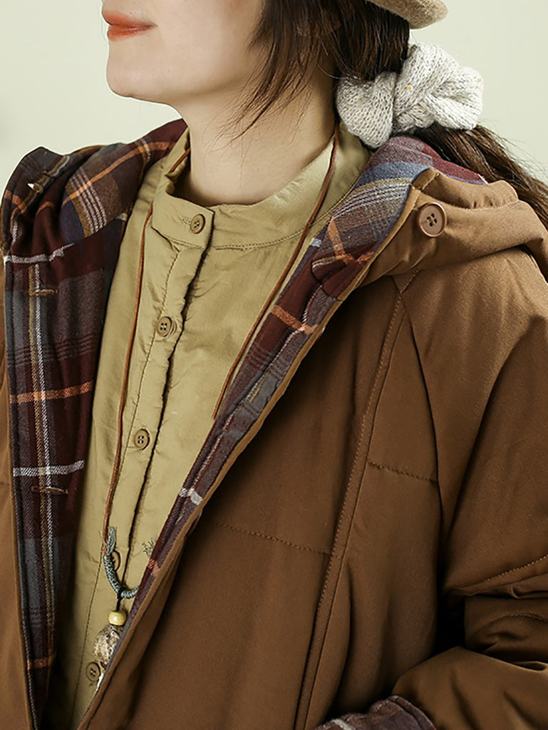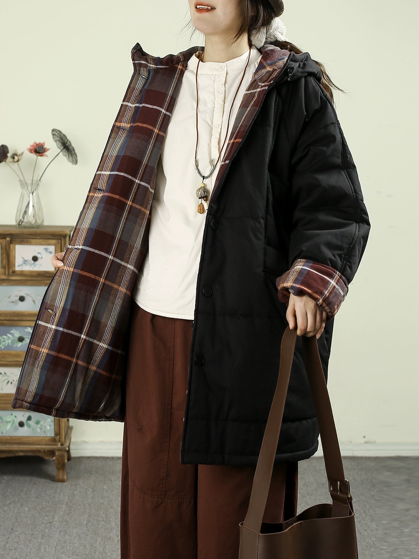 Dámský zimní kabát s kapucí, prošívaný, 100% bavlna, čisté barvy