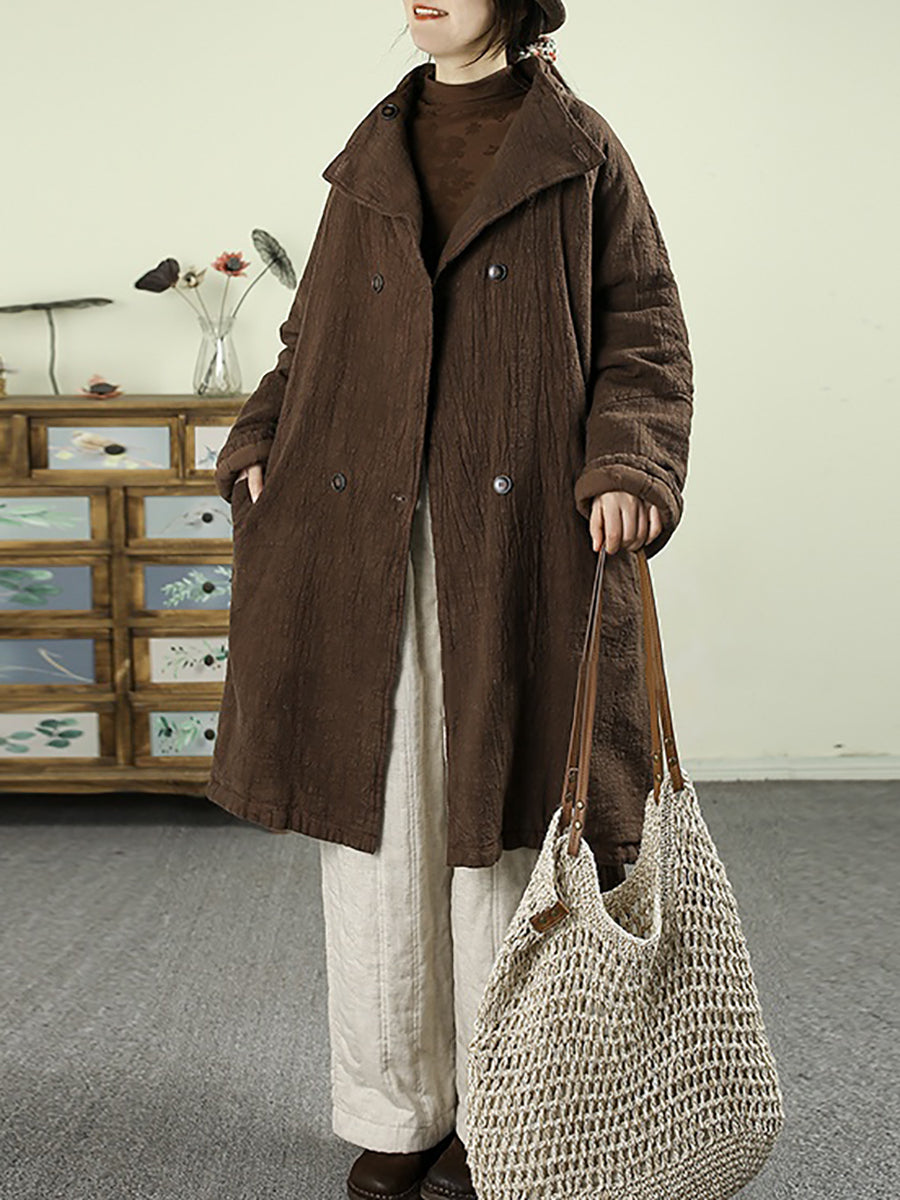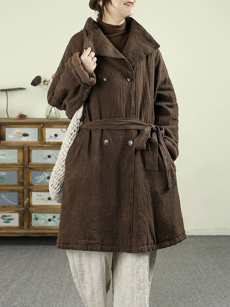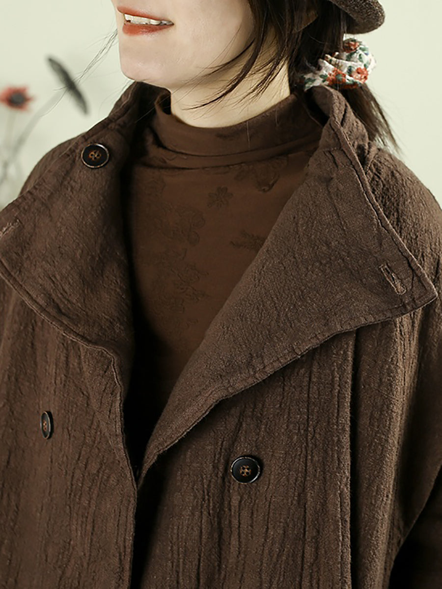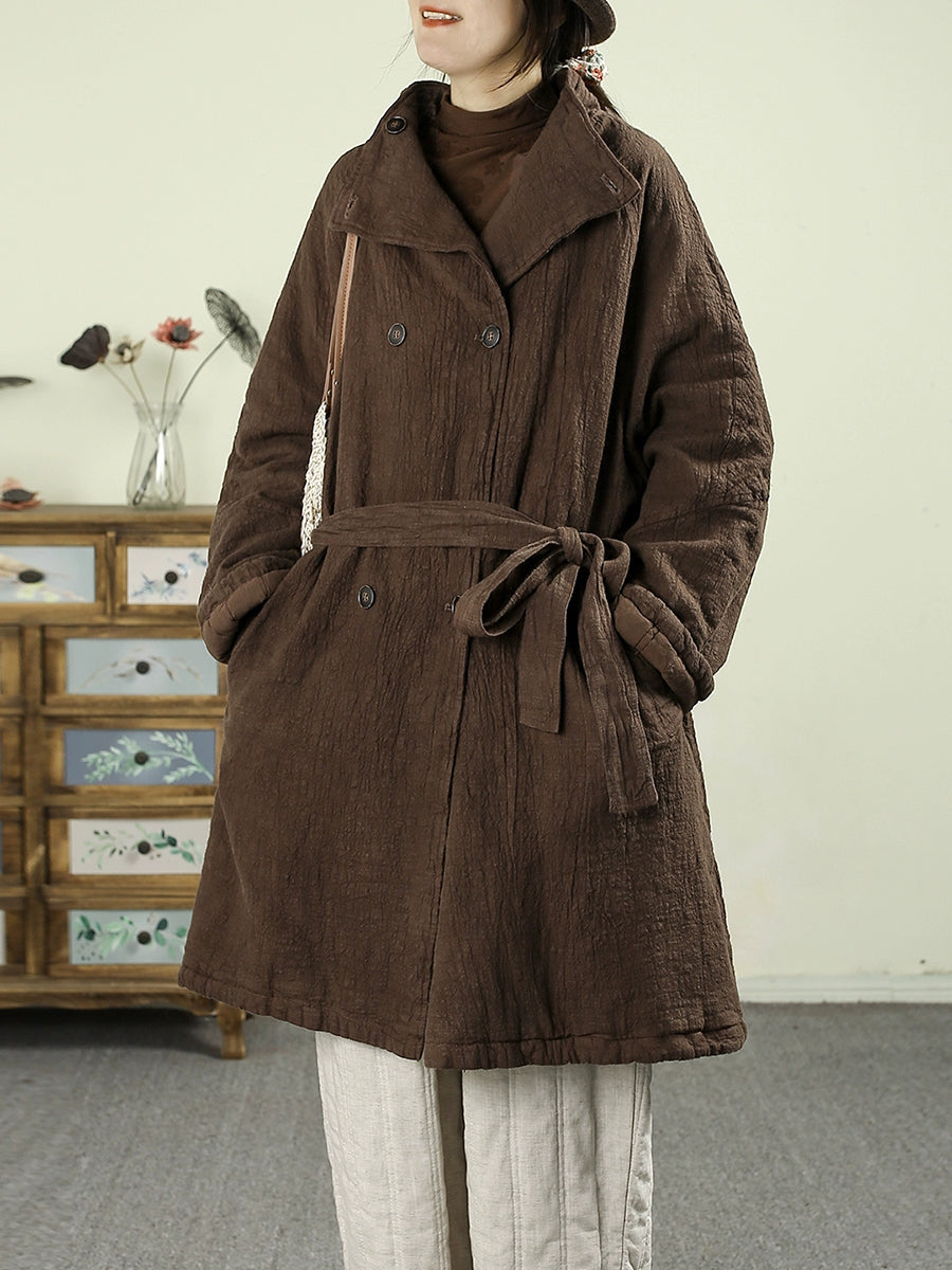 Dámský zimní retro čistě barevný 100% lněný prošívaný trenčkot