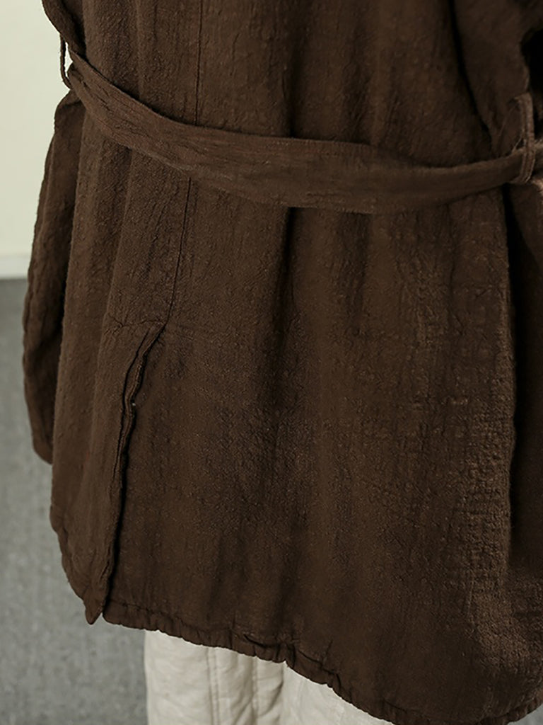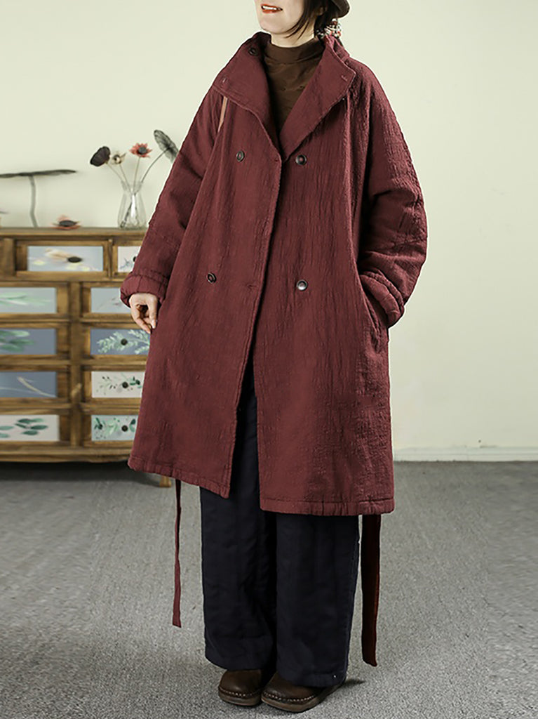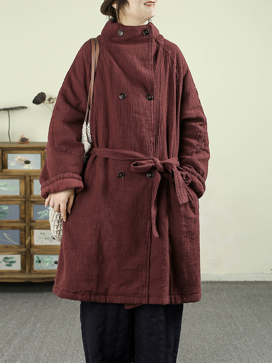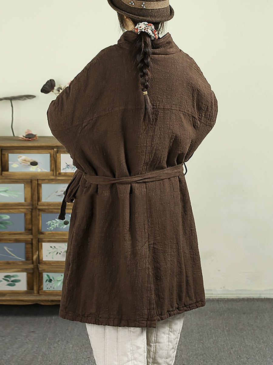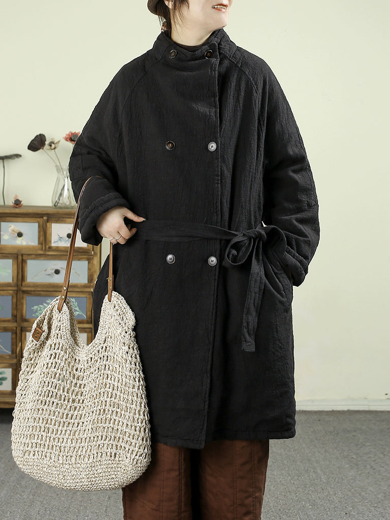 Dámský zimní retro čistě barevný 100% lněný prošívaný trenčkot