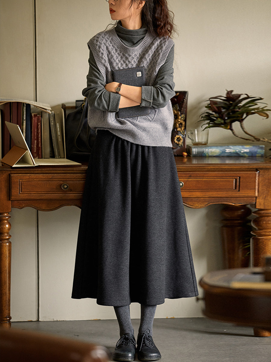 Dámská podzimní ležérní čistě barevná sukně ve tvaru A