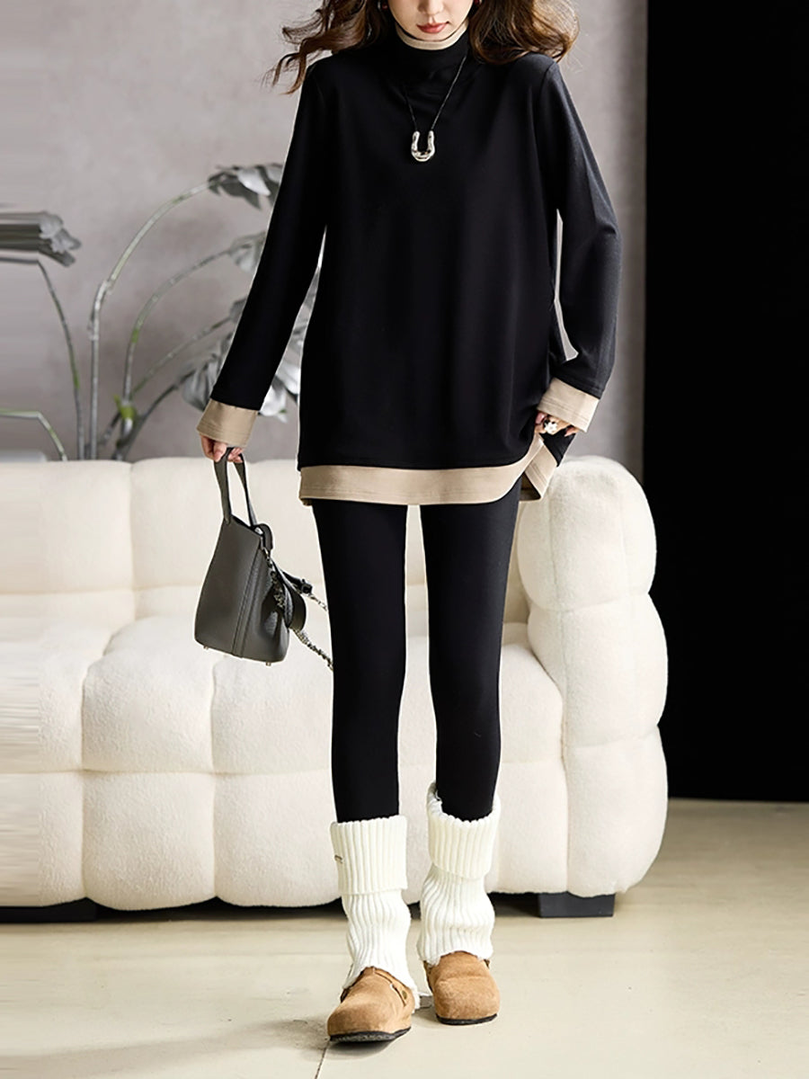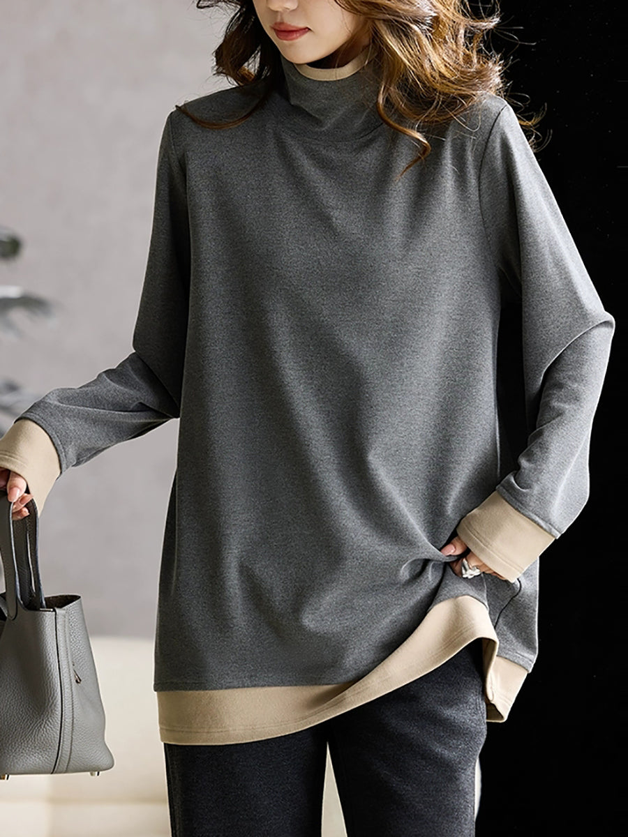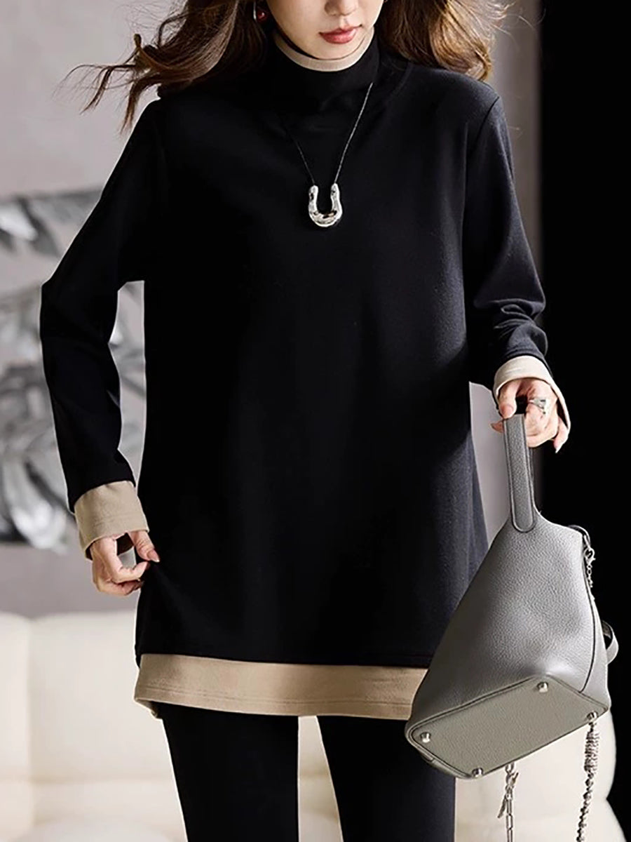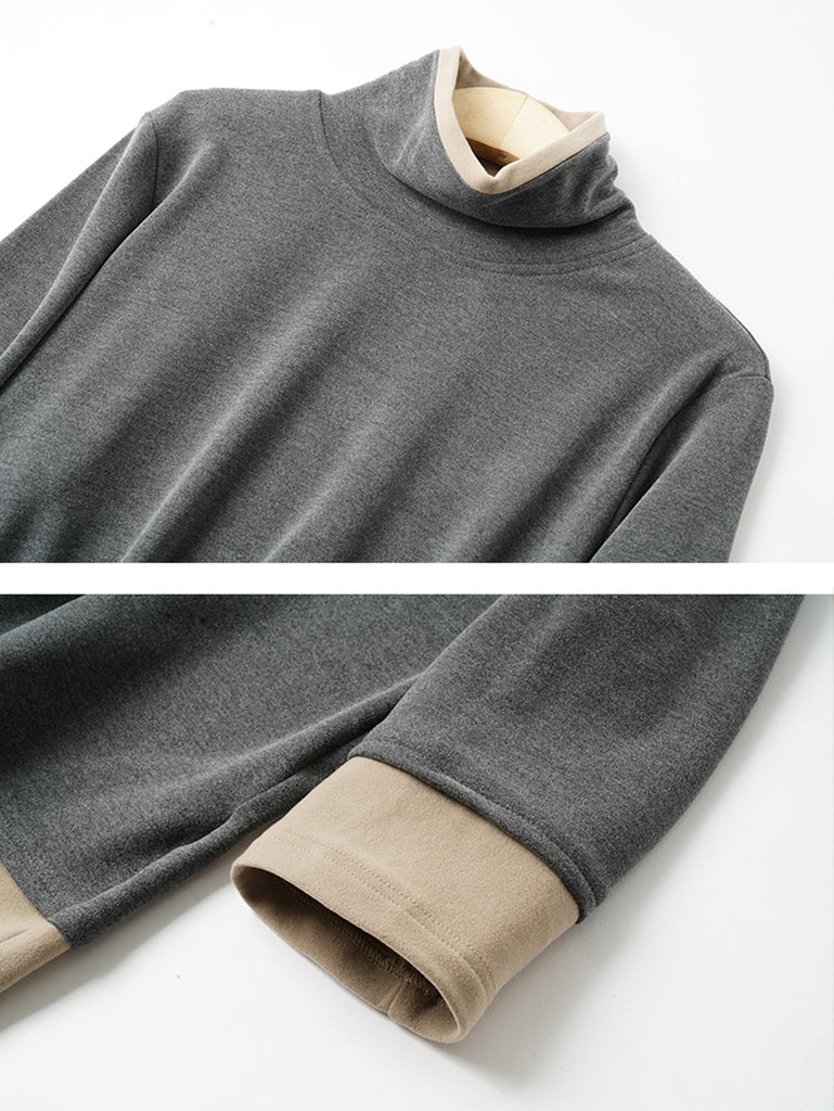 Dámská zimní ležérní barevně blokovaná roláková halenka