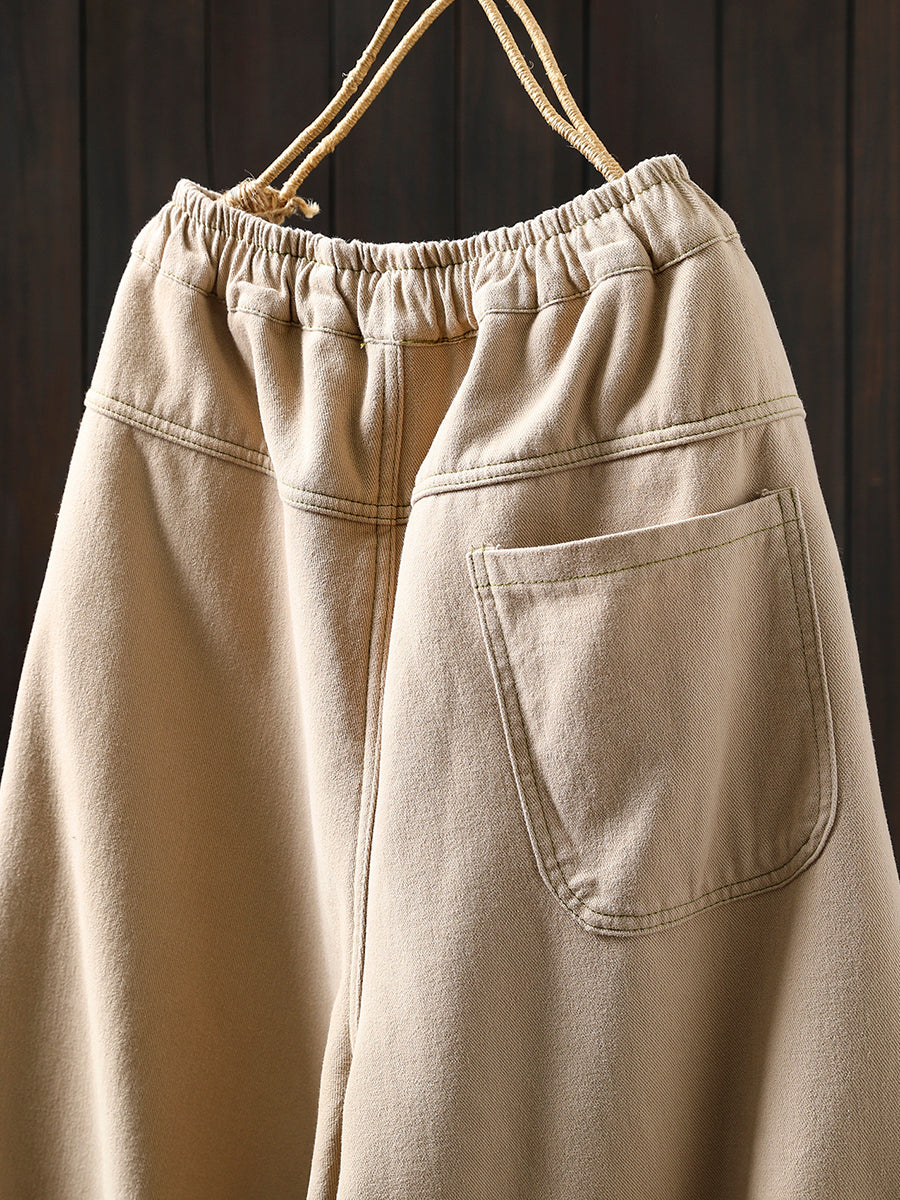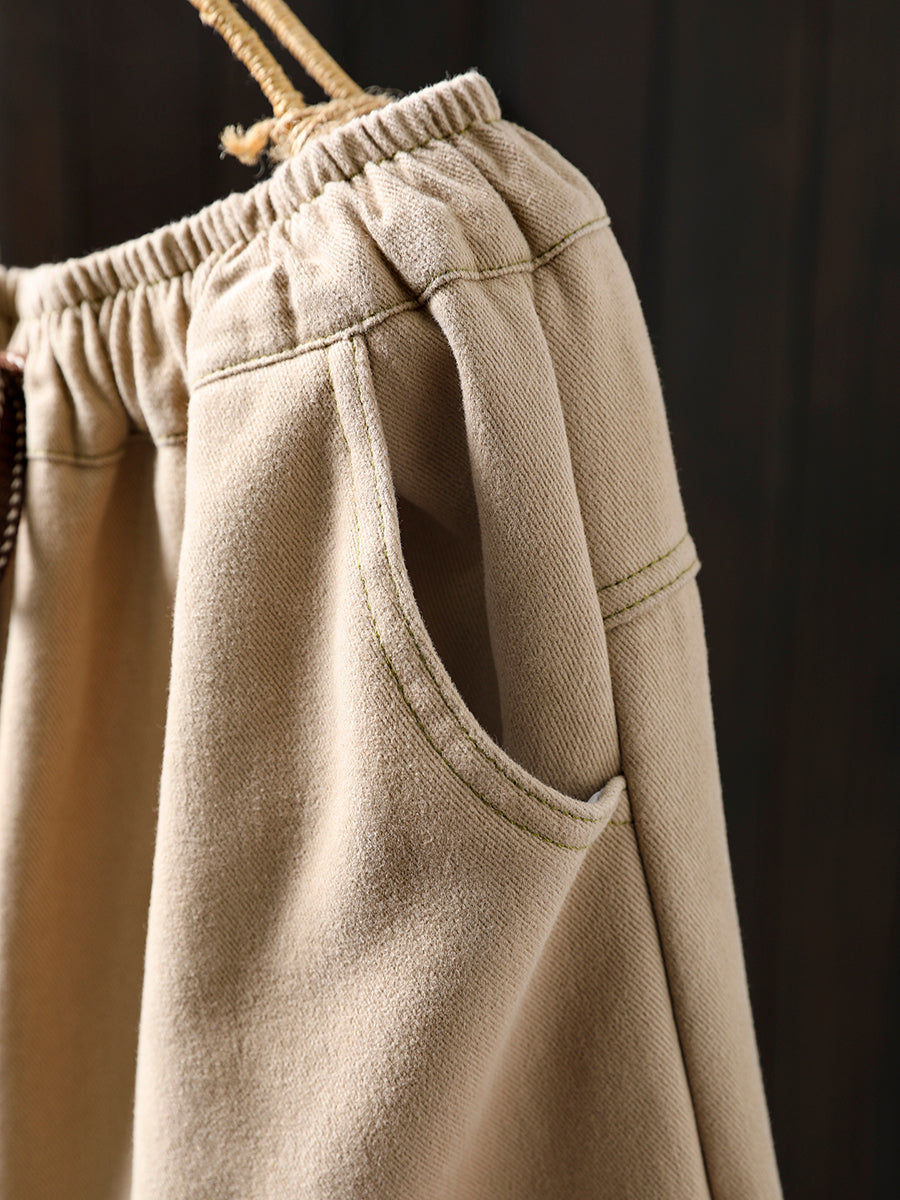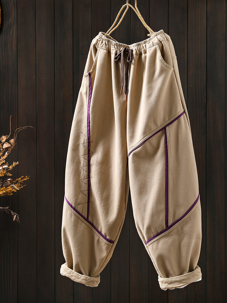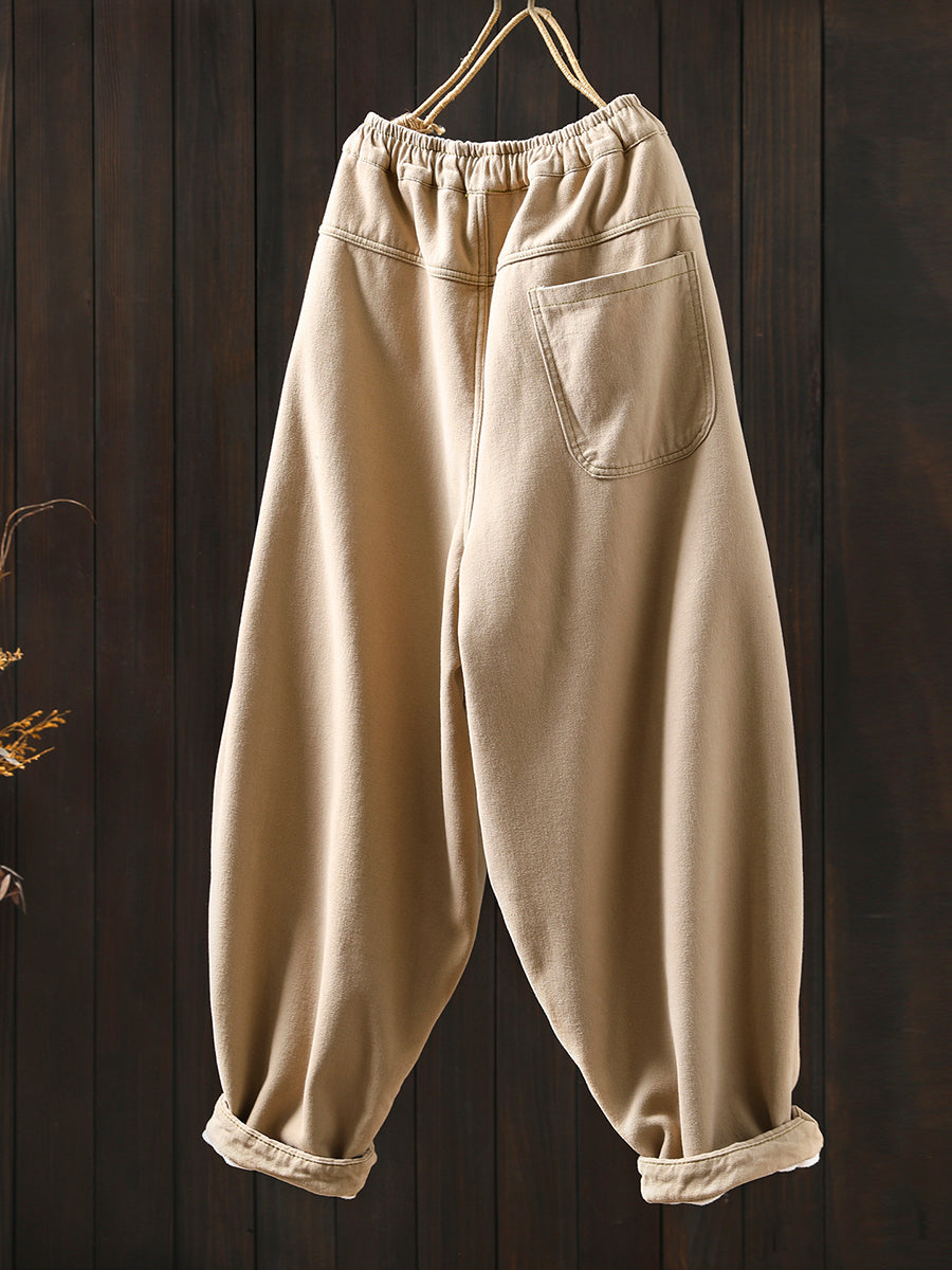 Dámské zimní harémové kalhoty s vintage pletenou bavlnou a fleecovou podšívkou