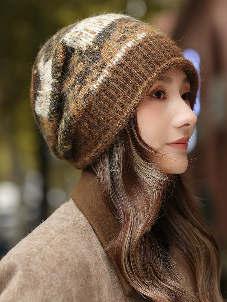 Zimní teplá umělecká měkká pletená čepice s mixem barev