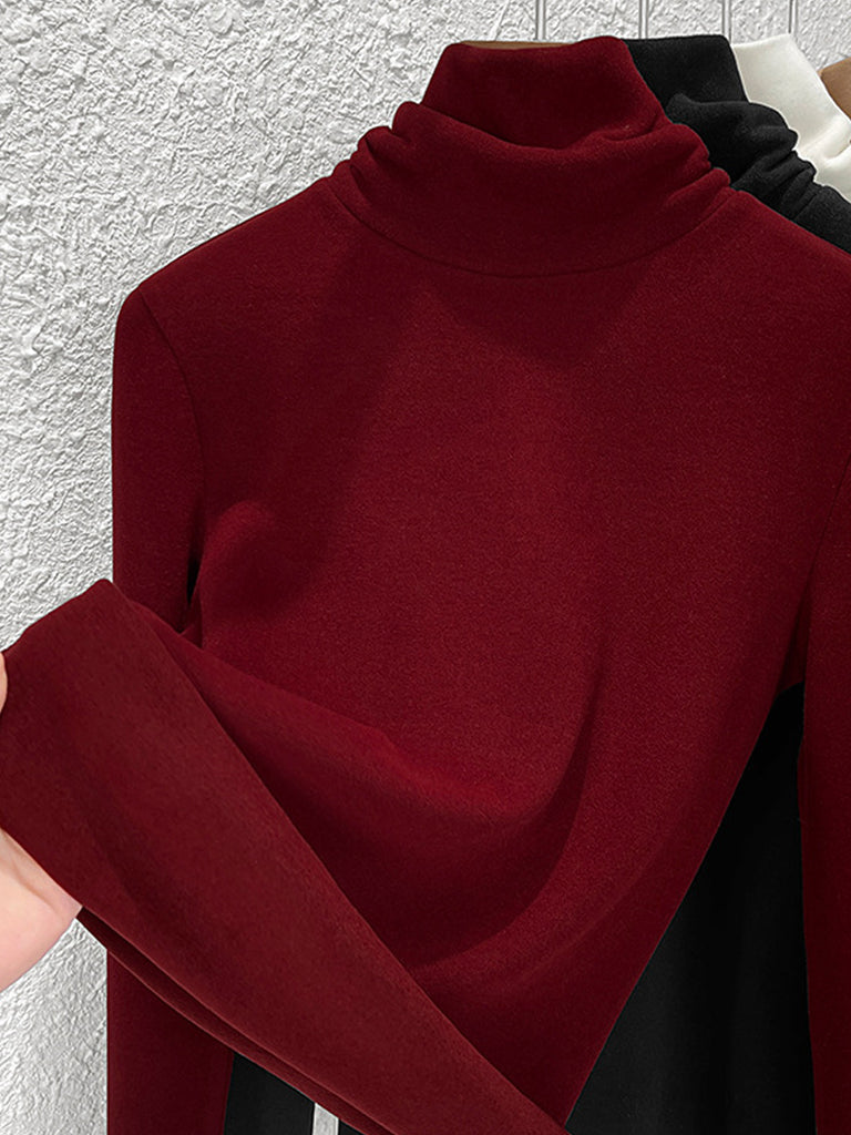 Dámská vintage zimní čistě barevná halenka s rolákem