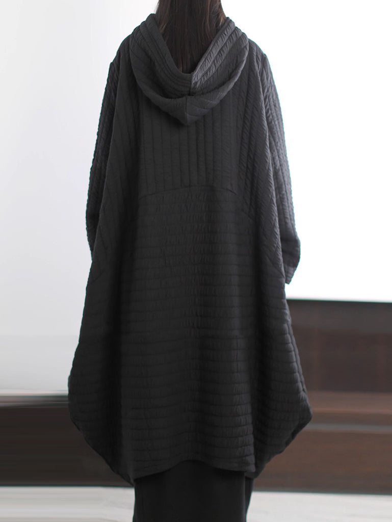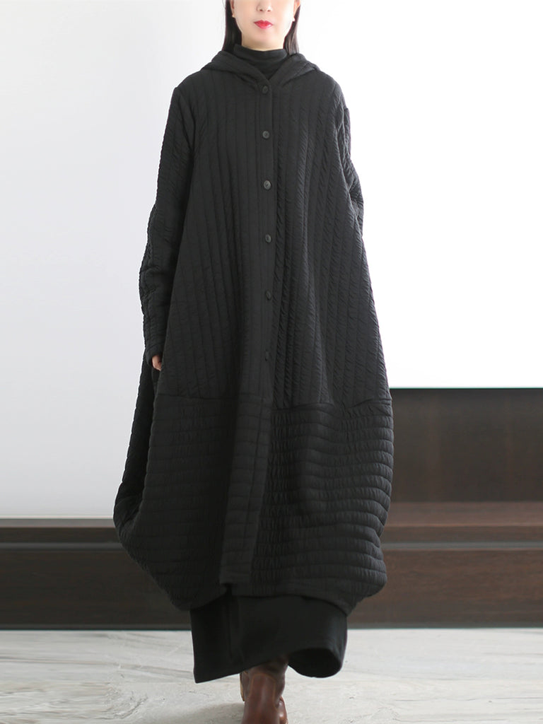 Dámský vintage zimní čistě barevný prošívaný kabát s kapucí