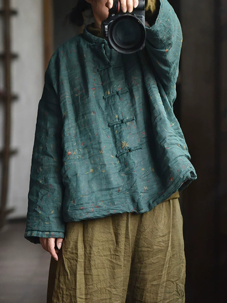 Dámský zimní retro čistě barevný lněný prošívaný kabát