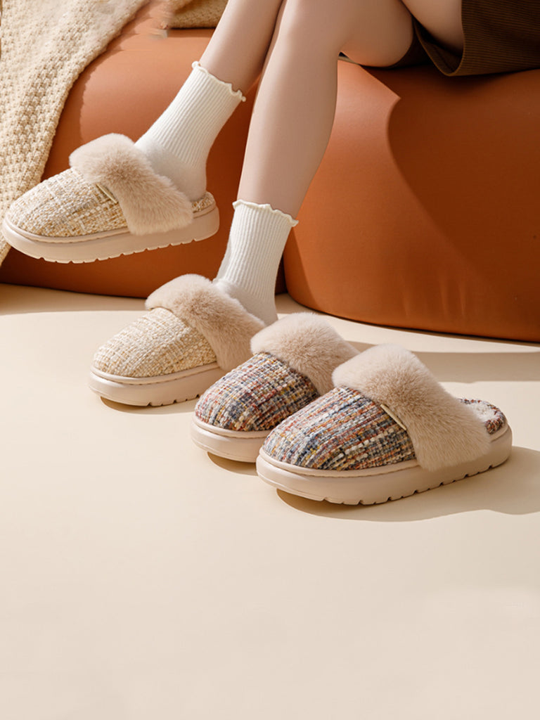 Pár zimních plyšových pantoflí v čistě barevných barvách