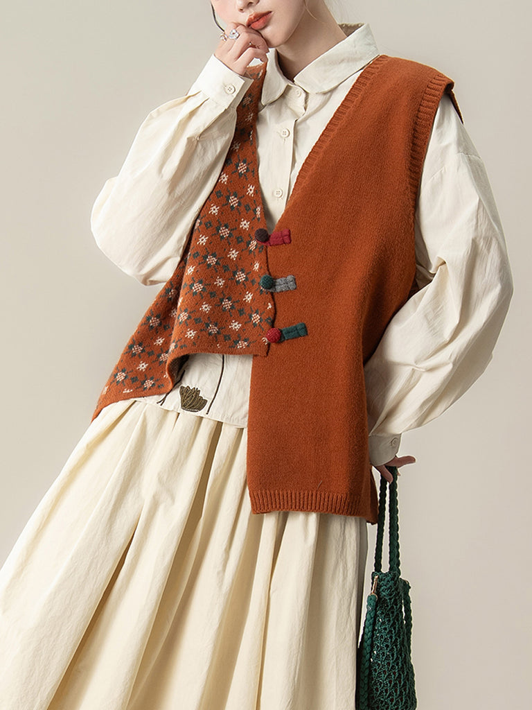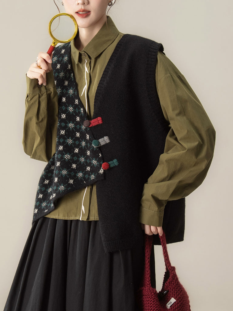 Dámská podzimní květinová pletená vesta s nepravidelným výstřihem do V
