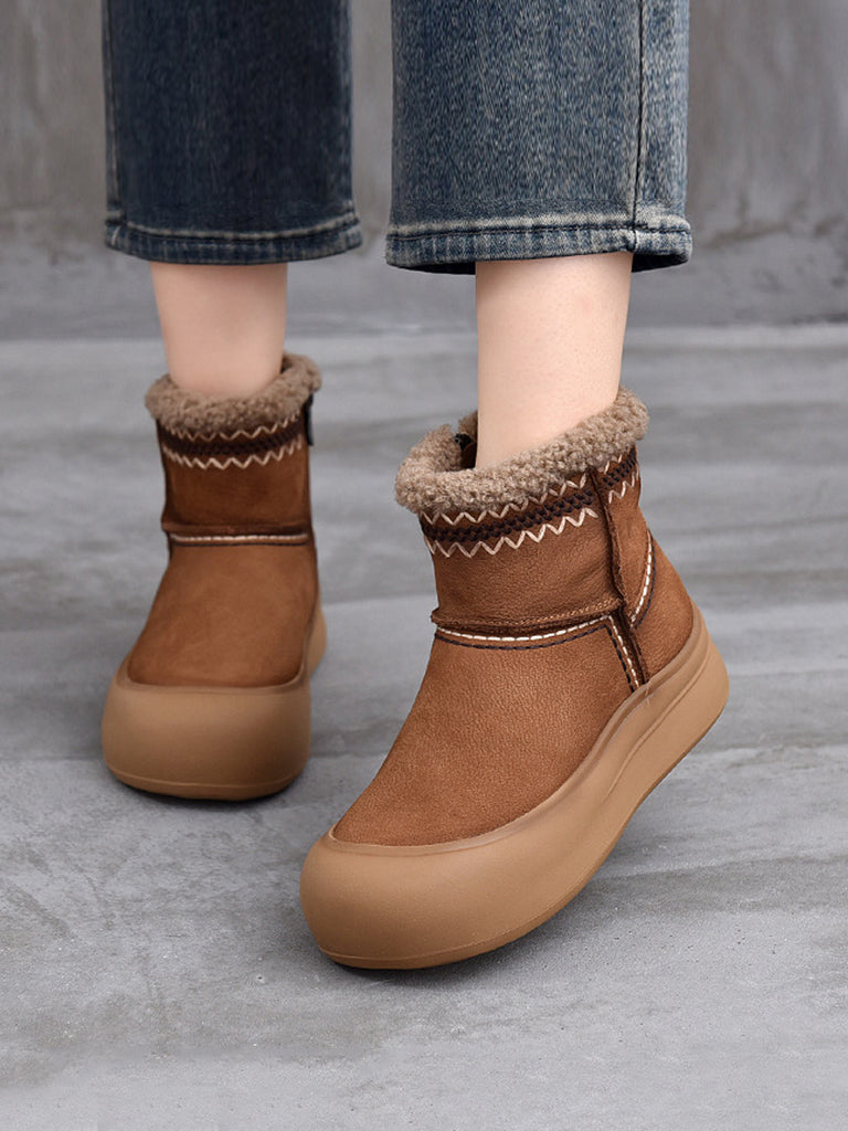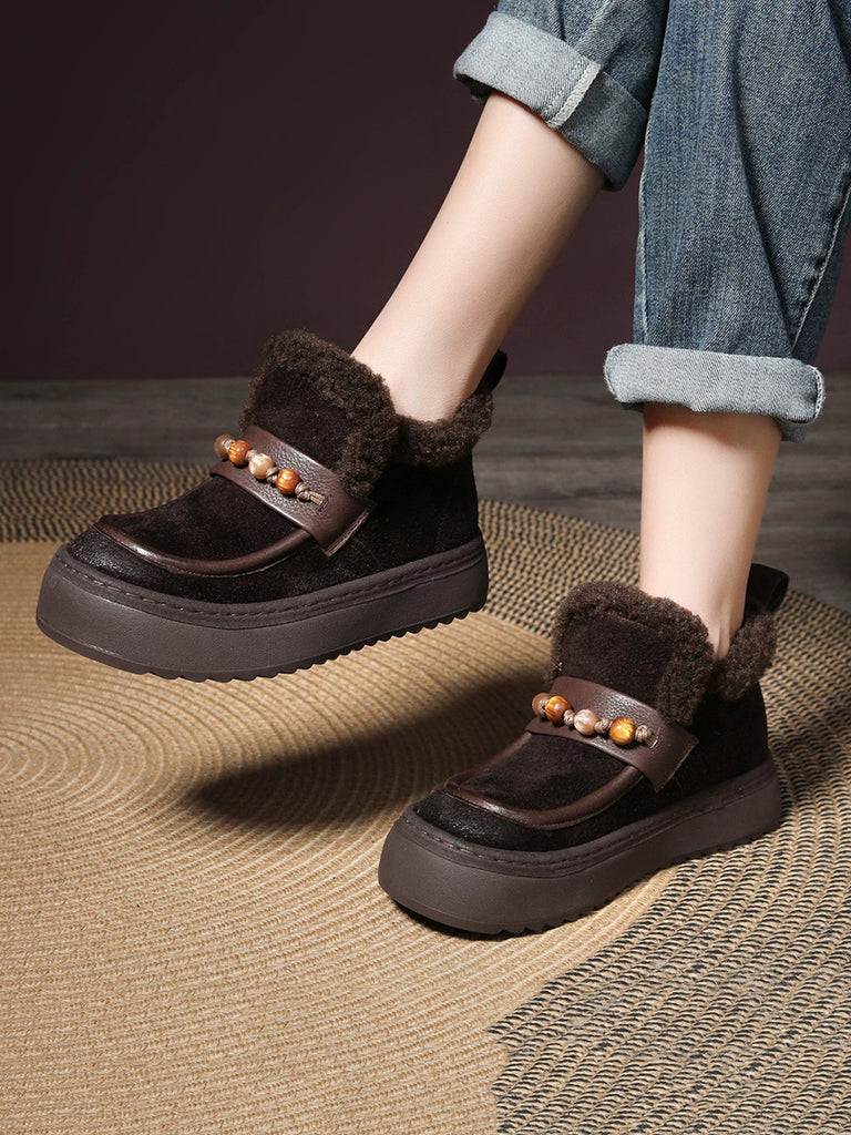 Dámské zimní etnické sněhule z pravé kůže s fleecovou podšívkou