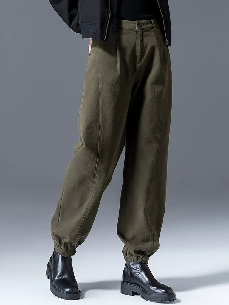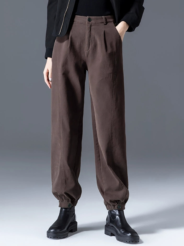 Dámské zimní vintage harémové kalhoty s čistou barvou a fleecovou podšívkou