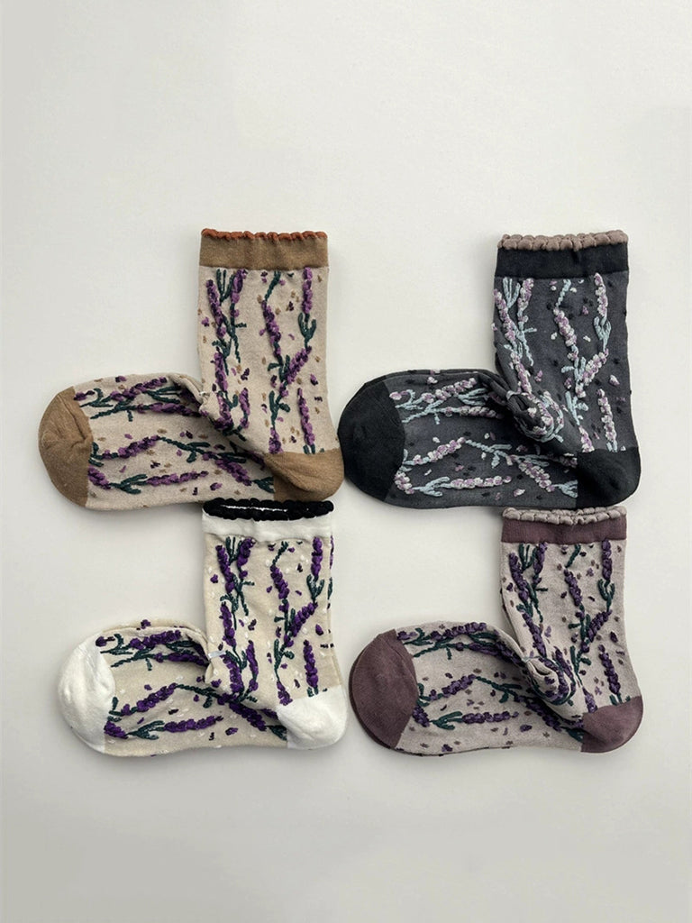 5 párů dámských zimních květinových žakárových bavlněných ponožek