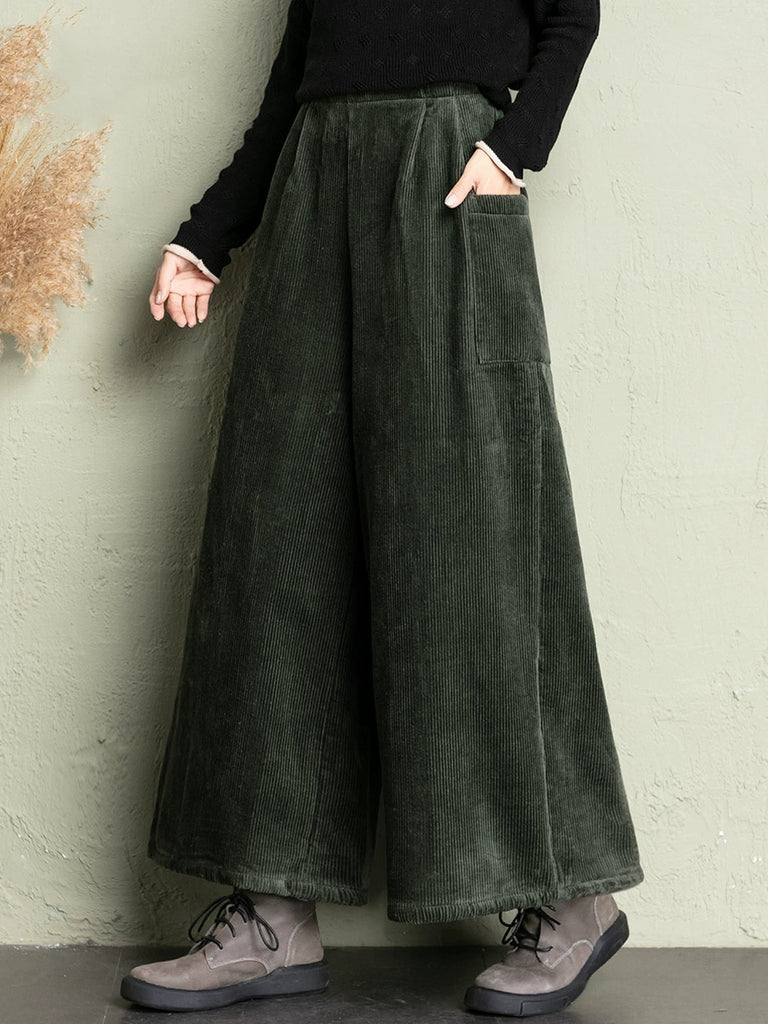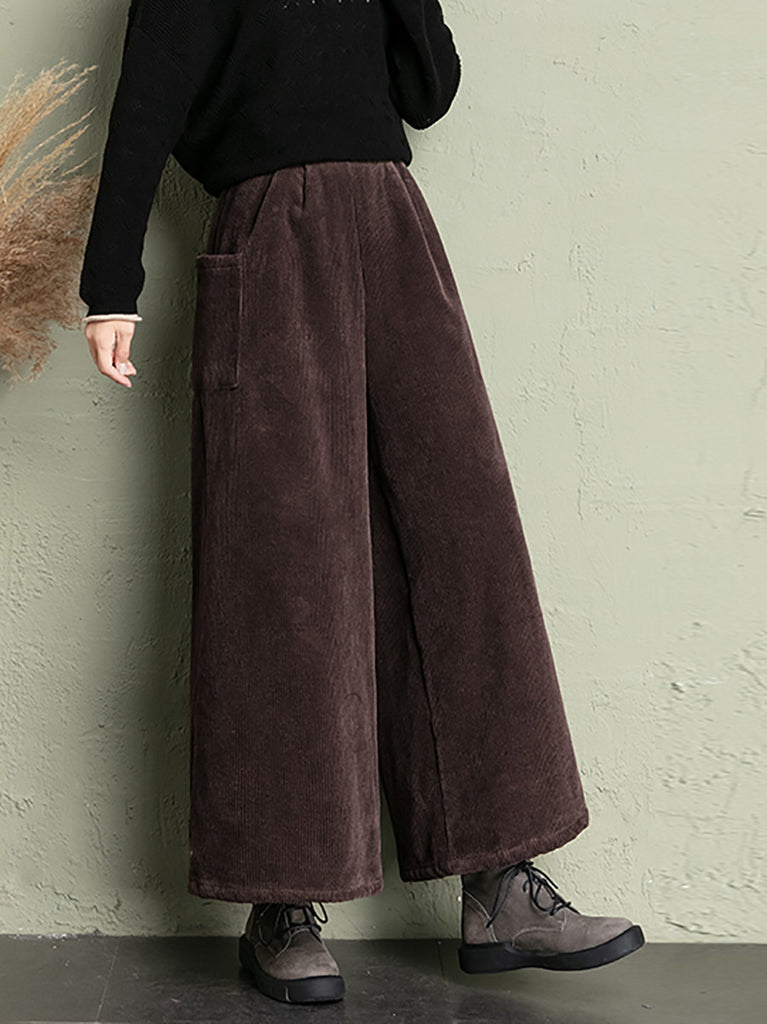 Dámské zimní ležérní manšestrové kalhoty s širokými nohavicemi v čistě barevných barvách