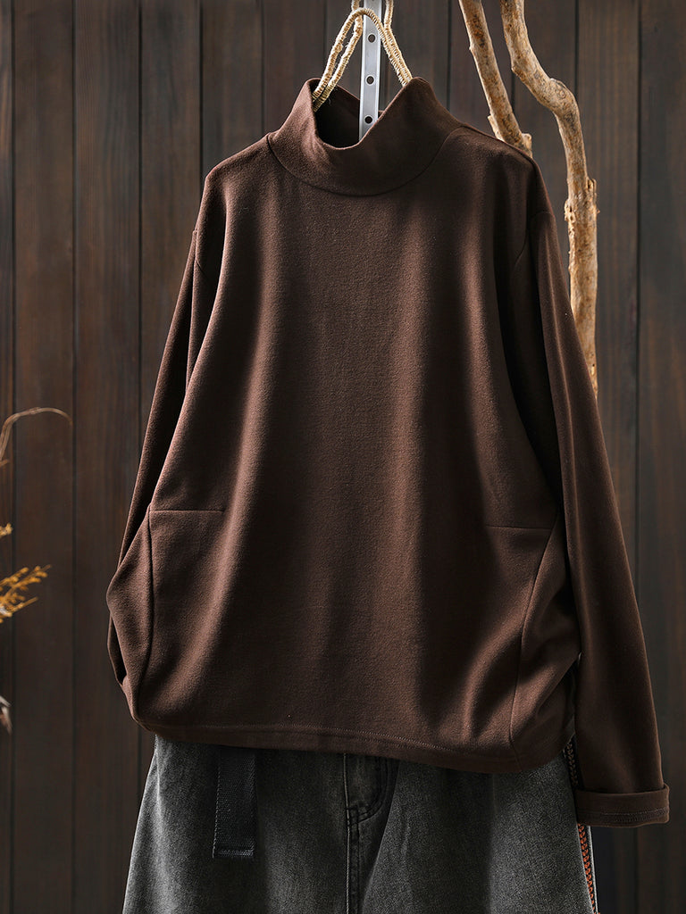 Dámská podzimní čistě barevná halenka s polovičním rolákem