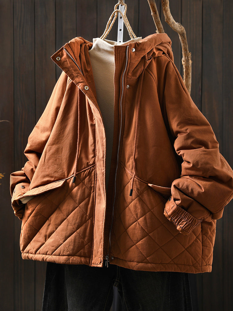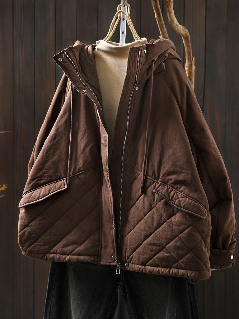 Dámský zimní ležérní kosočtvercový prošívaný kabát s kapucí