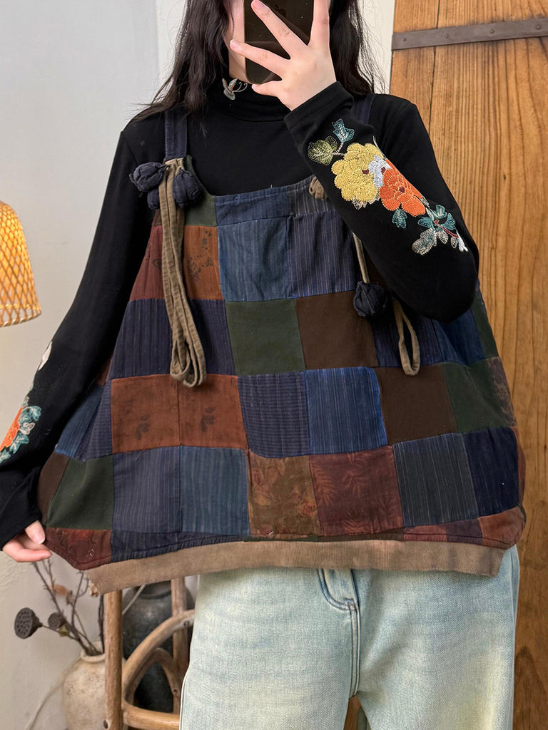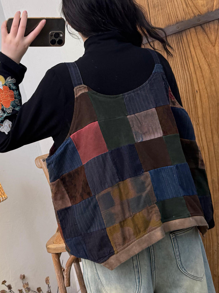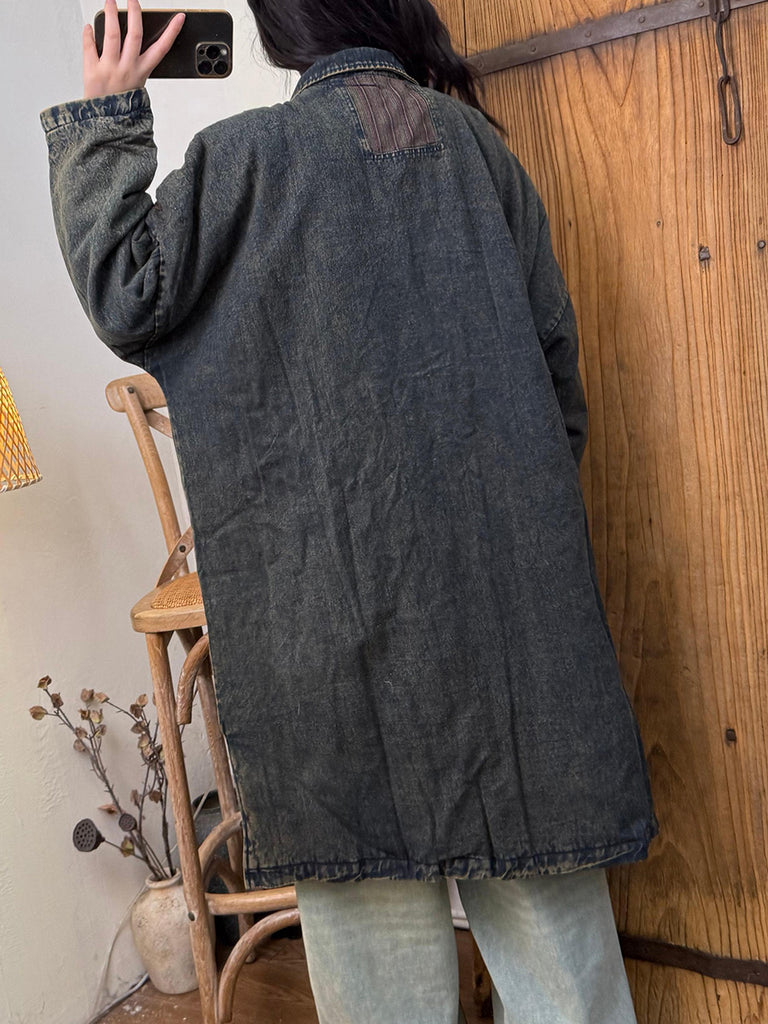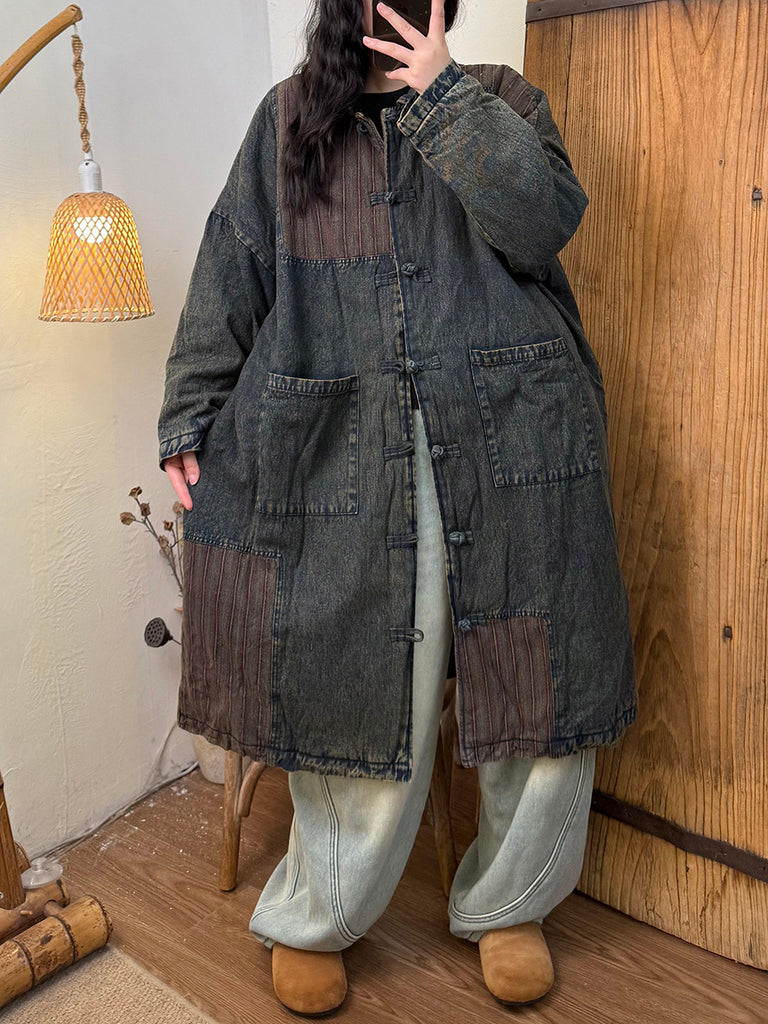 Dámský vintage zimní patchworkový džínový kabát s výstřihem do O-neck