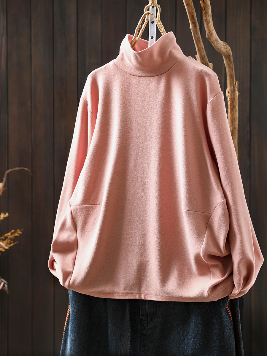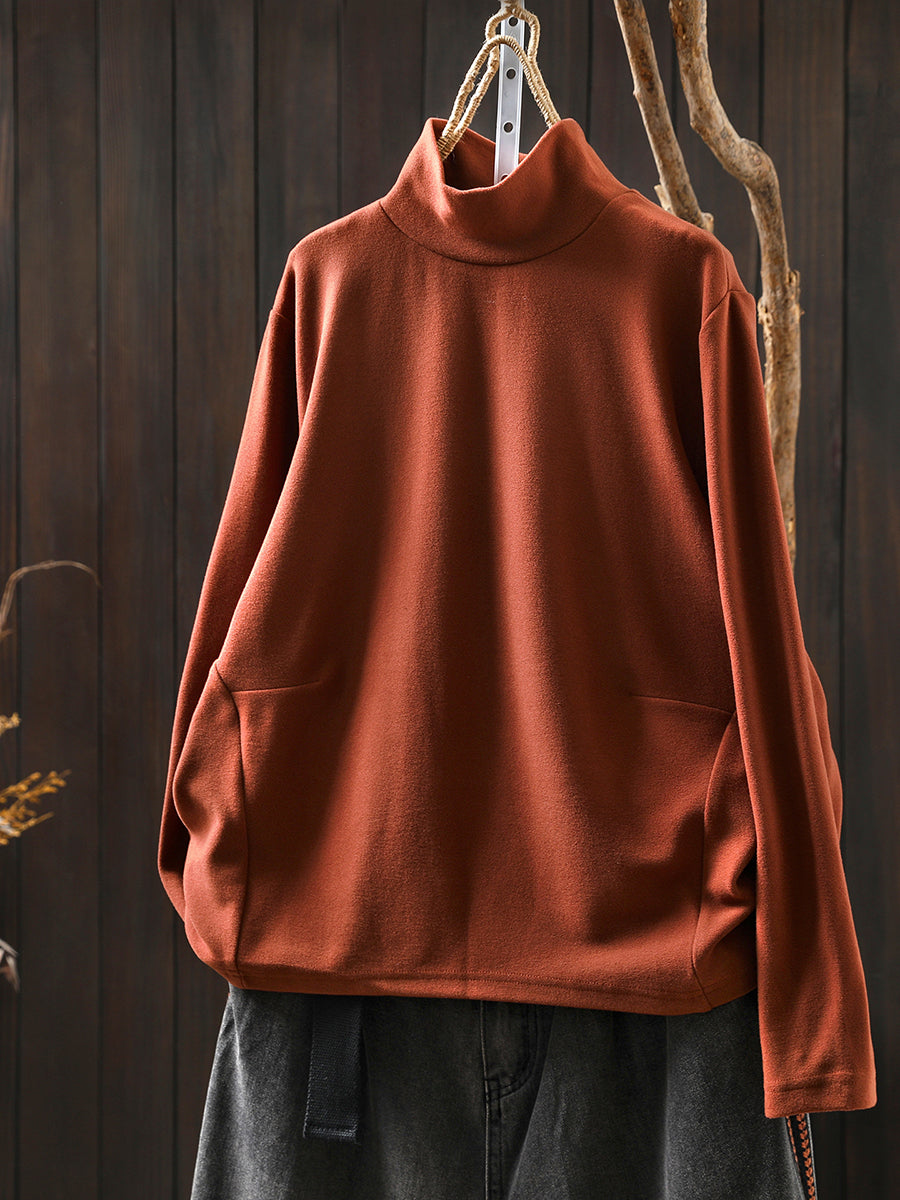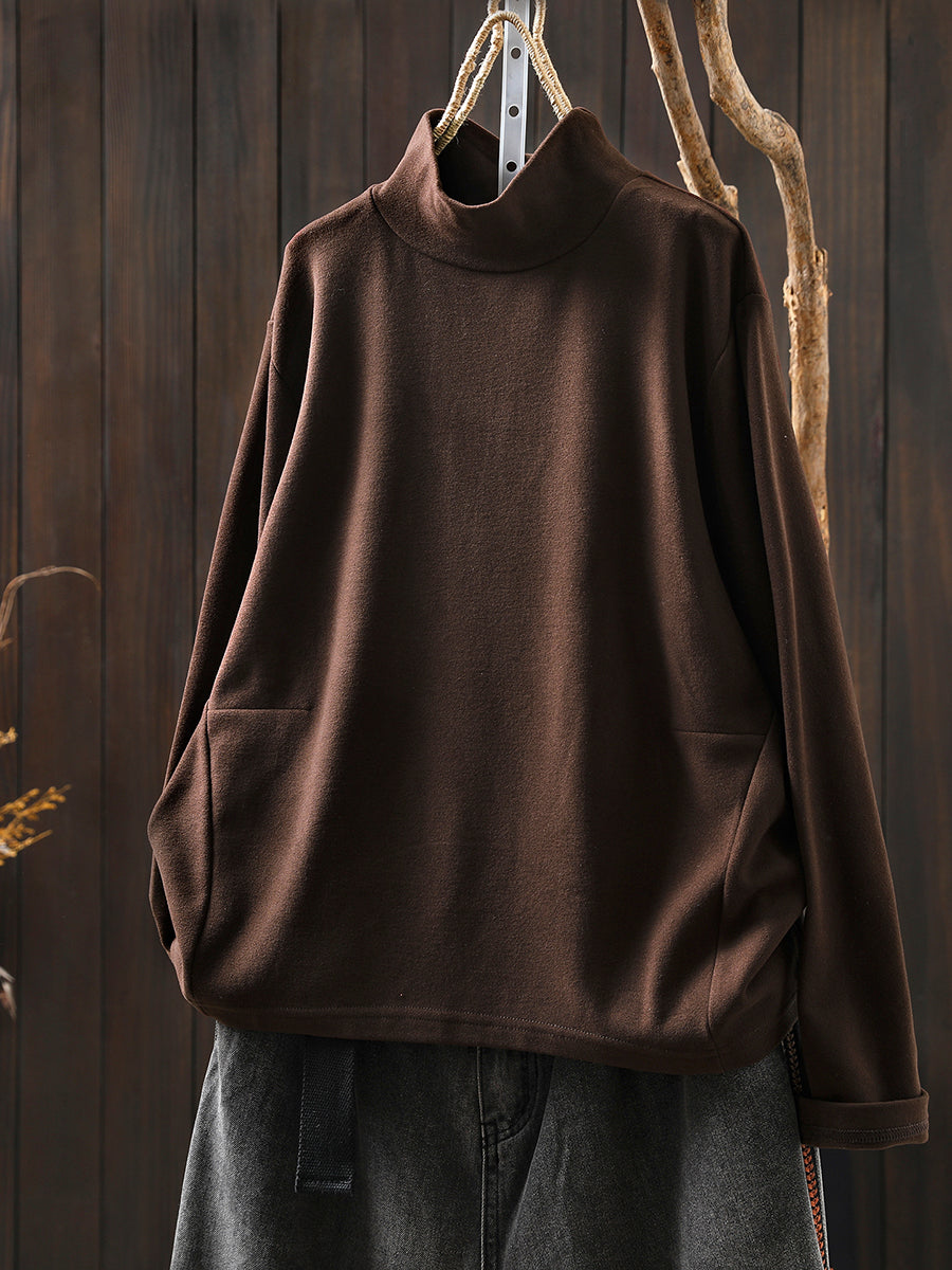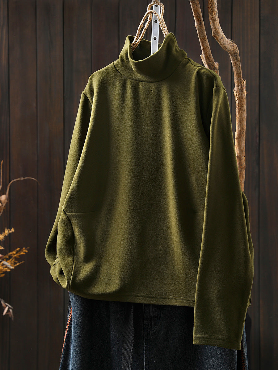 Dámská ležérní podzimní čistě barevná bavlněná halenka s rolákem