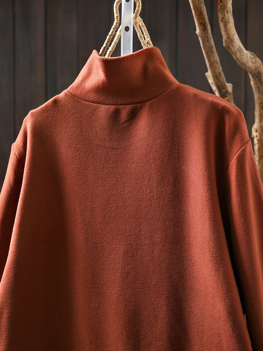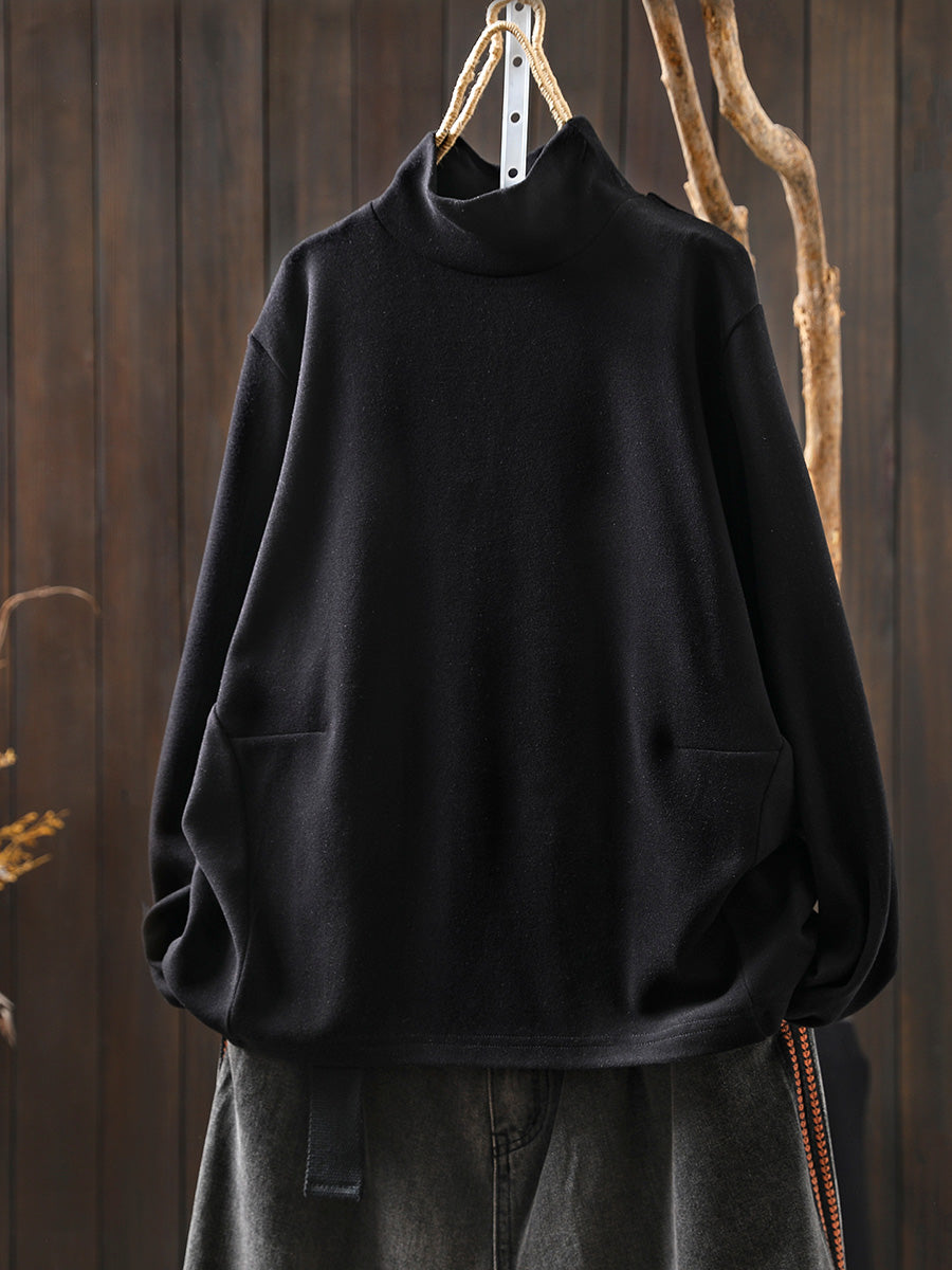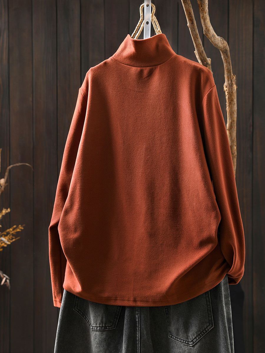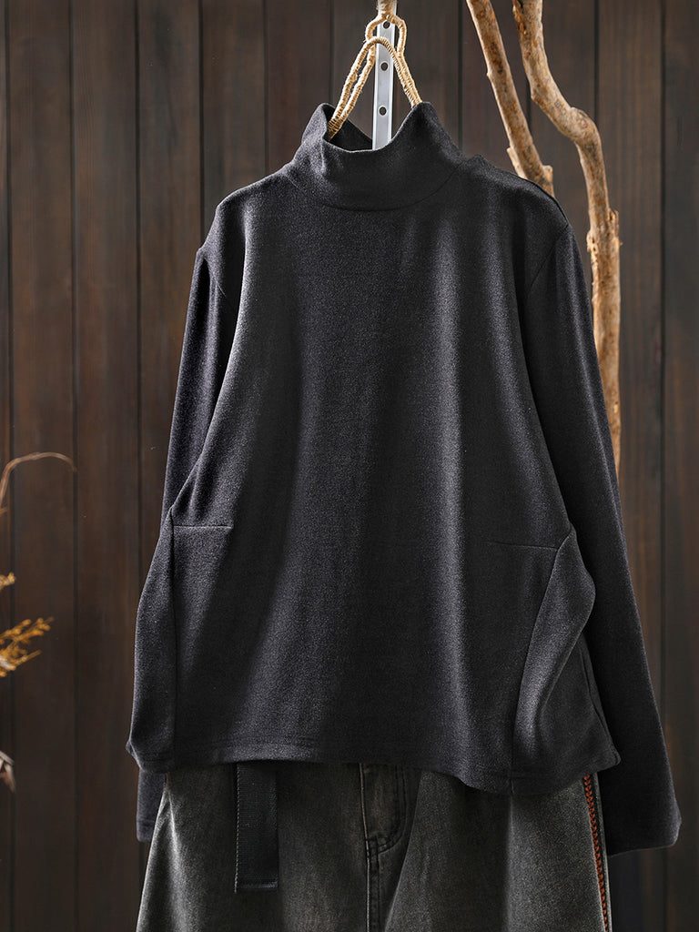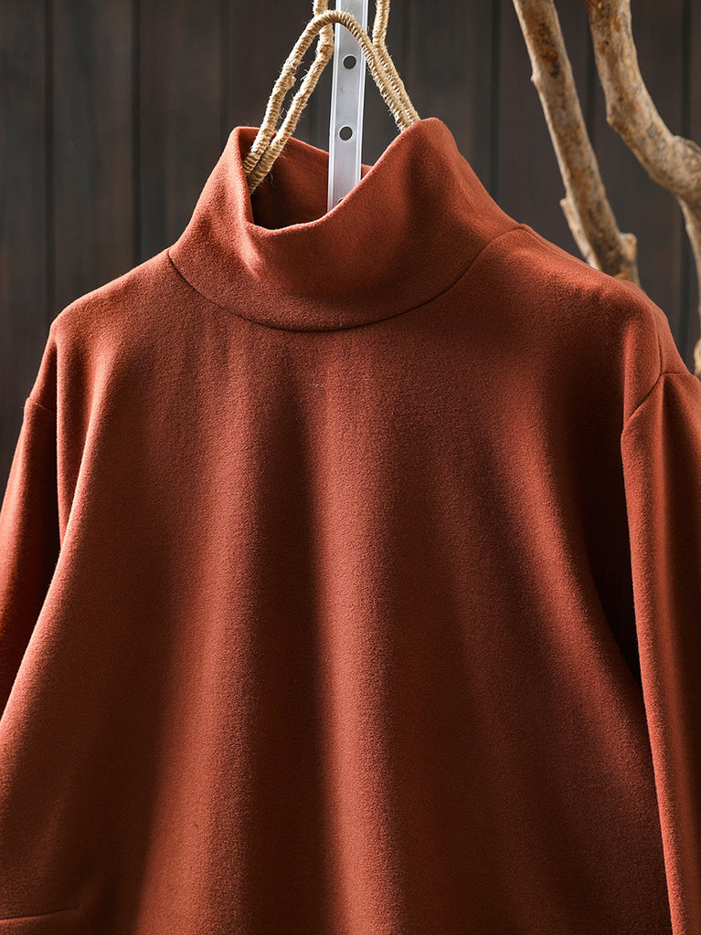 Dámská ležérní podzimní čistě barevná bavlněná halenka s rolákem