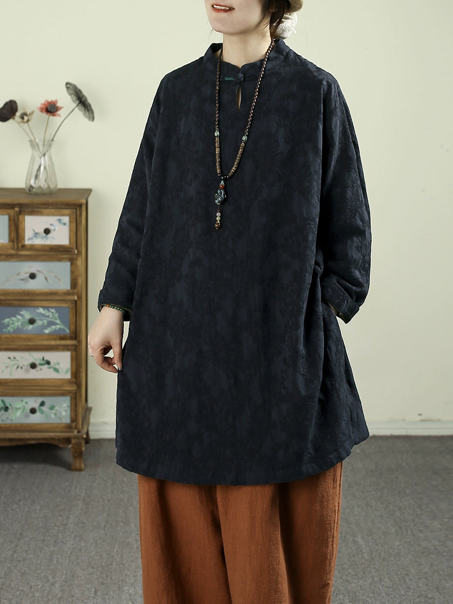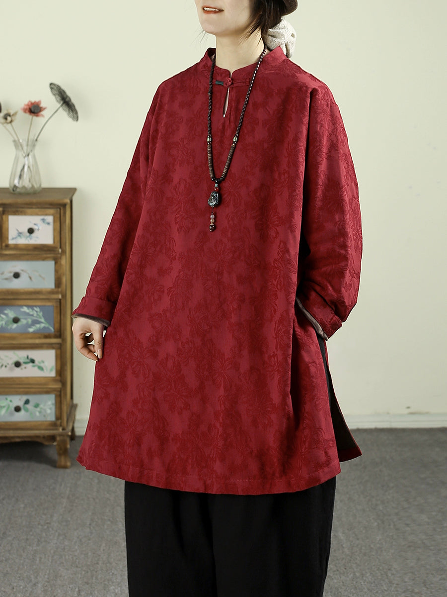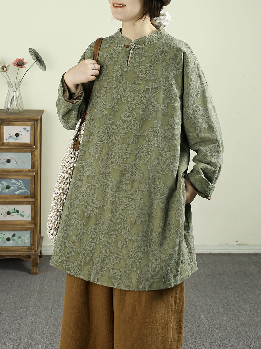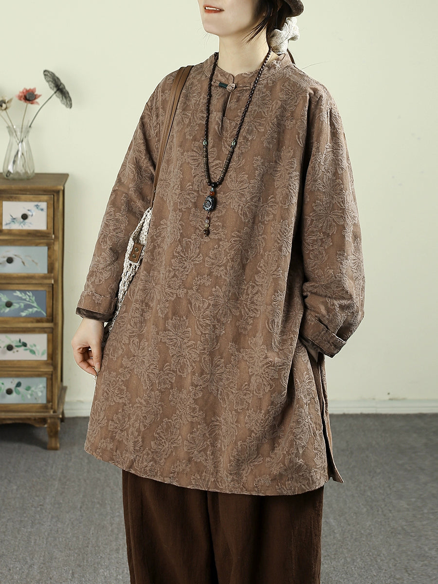 Dámská zimní retro žakárová košile s fleecovou podšívkou ze 100% lnu