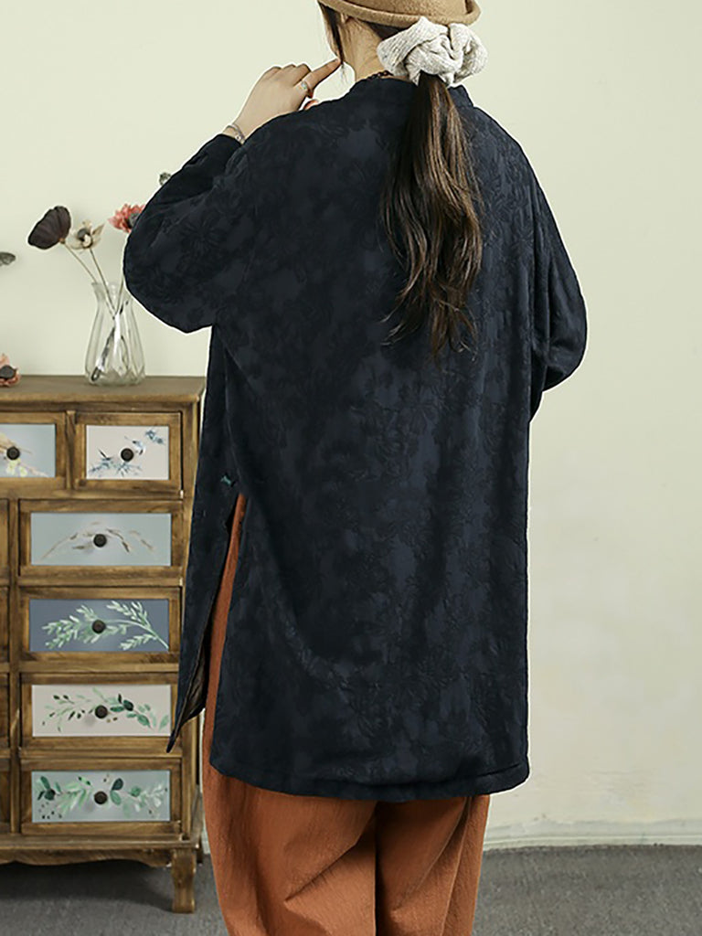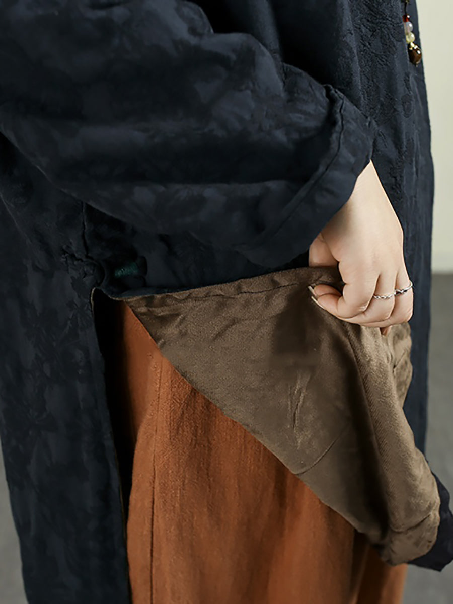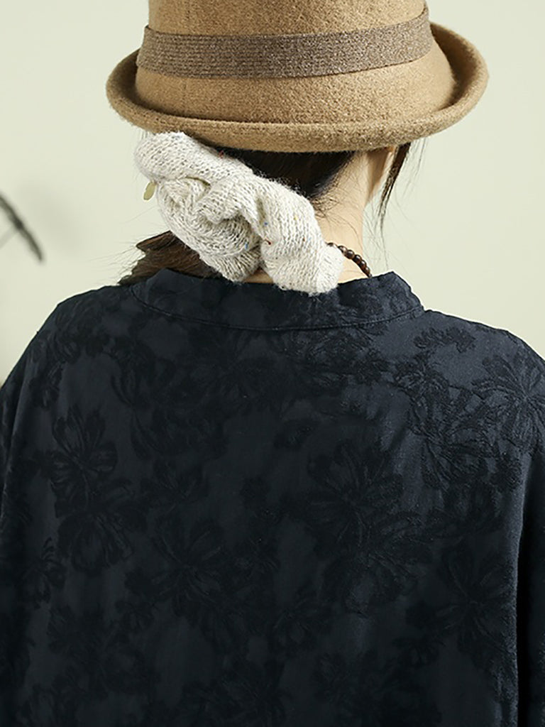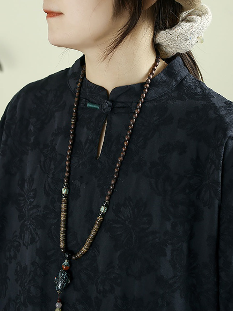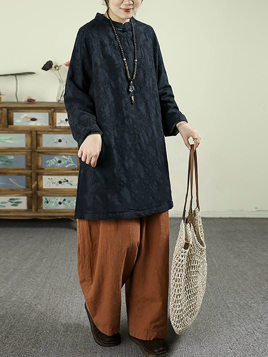 Dámská zimní retro žakárová košile s fleecovou podšívkou ze 100% lnu