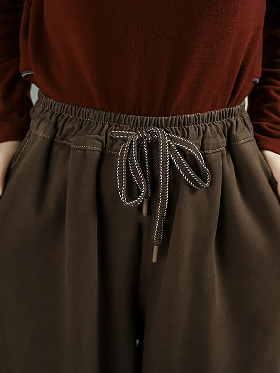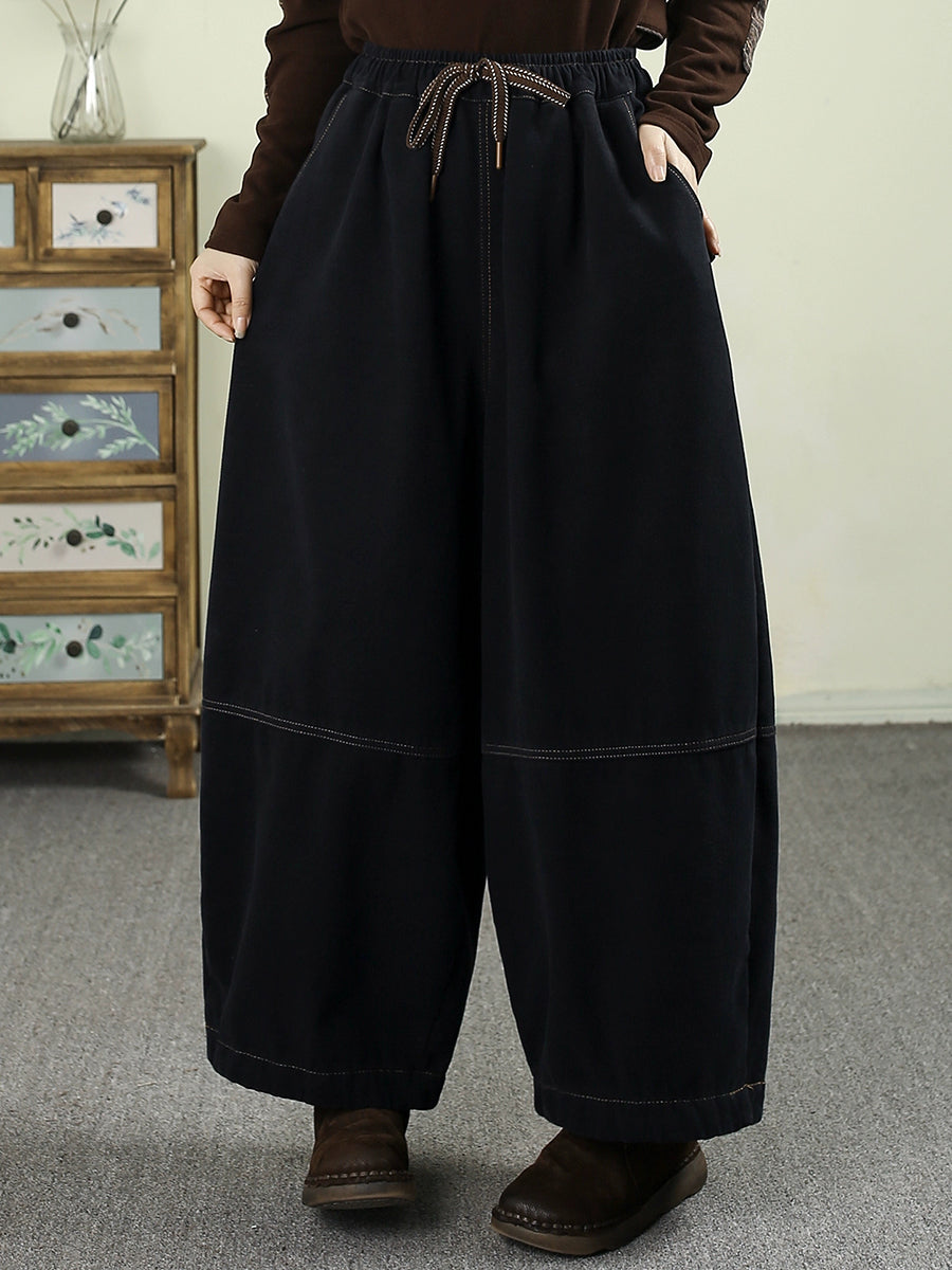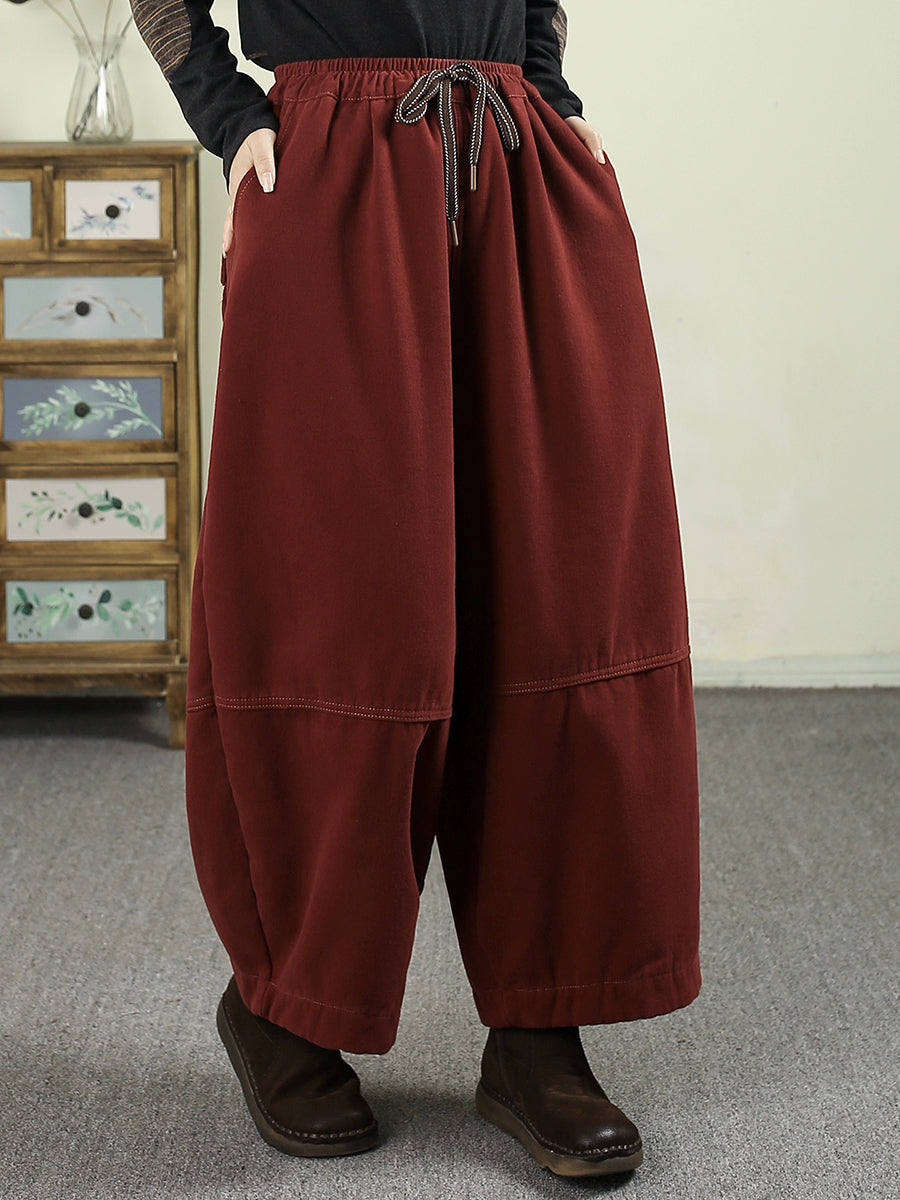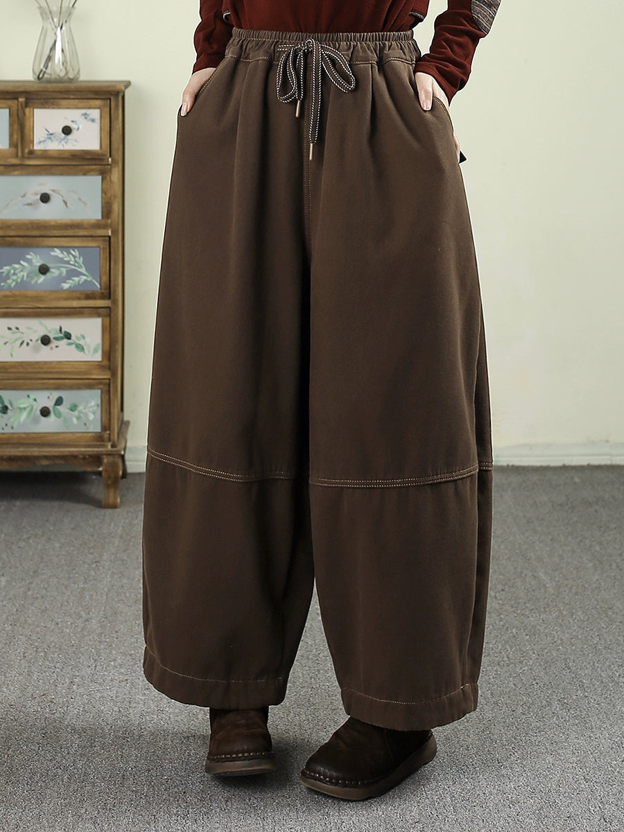 Dámské zimní retro harémové kalhoty s čistou barvou a fleecovou podšívkou