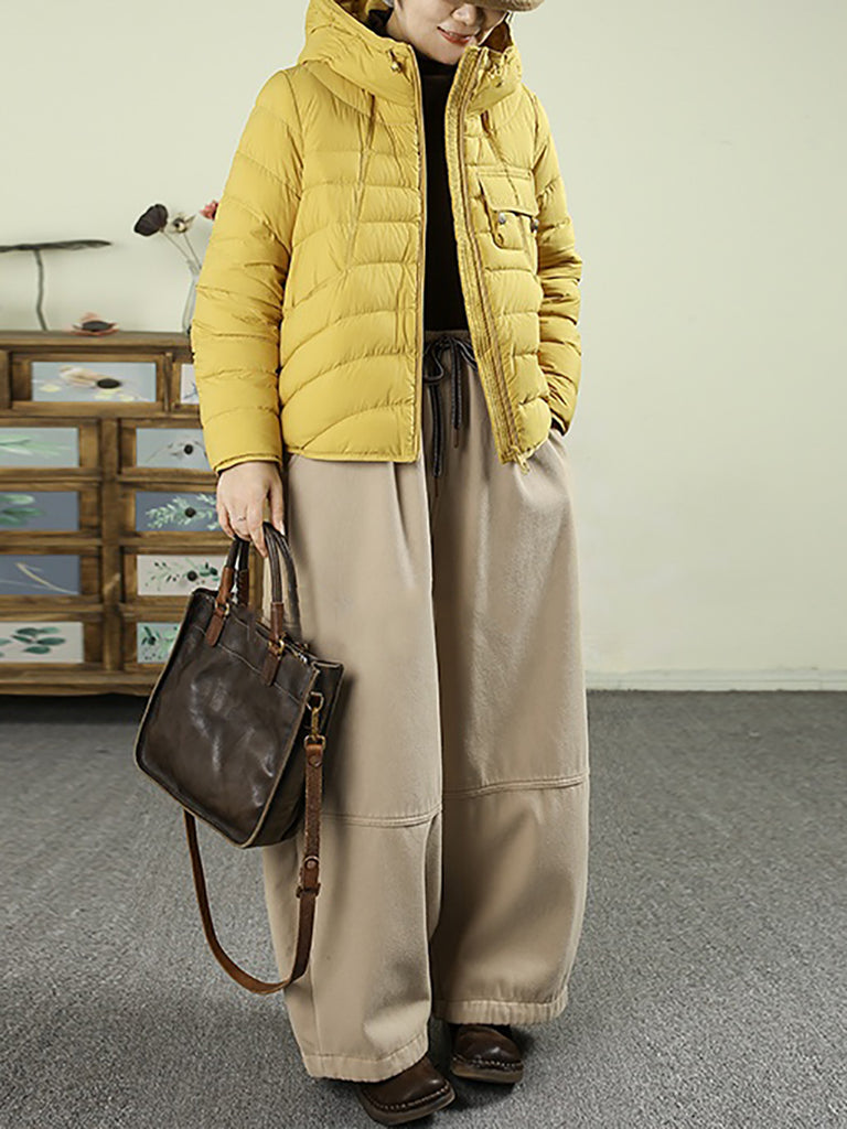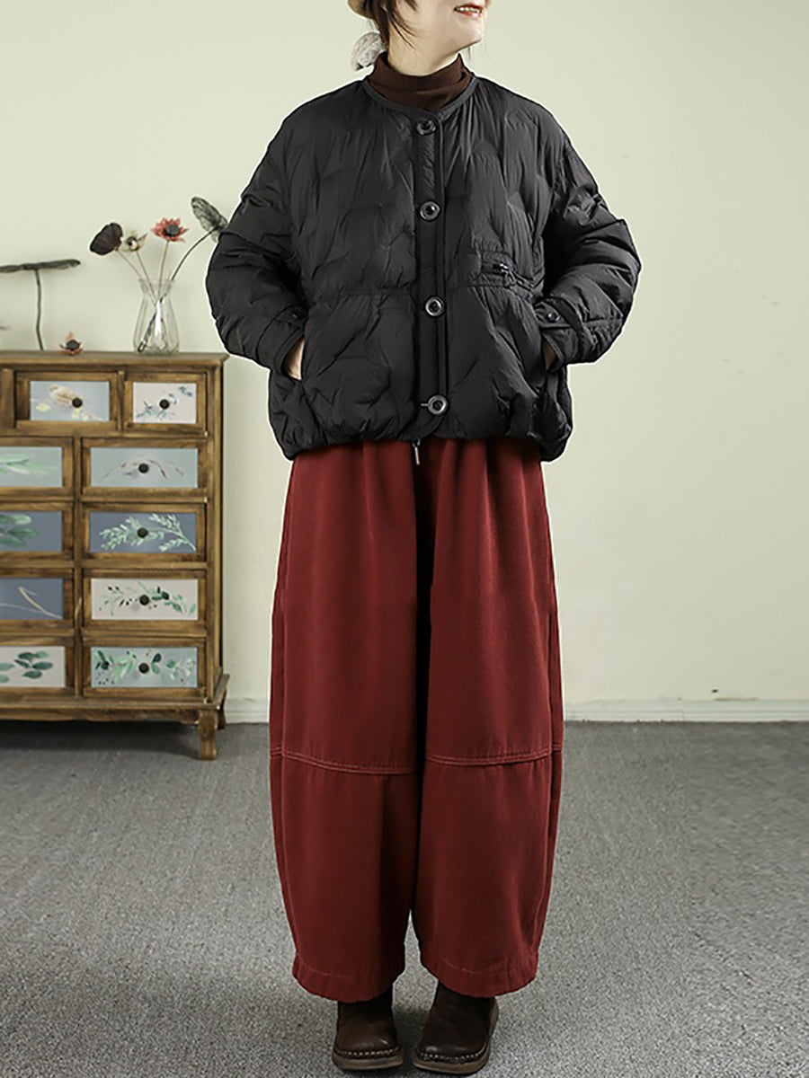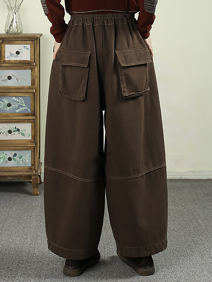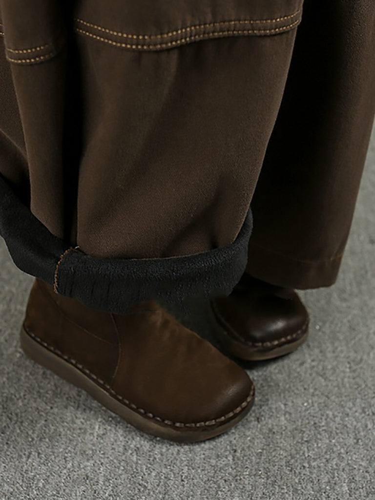 Dámské zimní retro harémové kalhoty s čistou barvou a fleecovou podšívkou